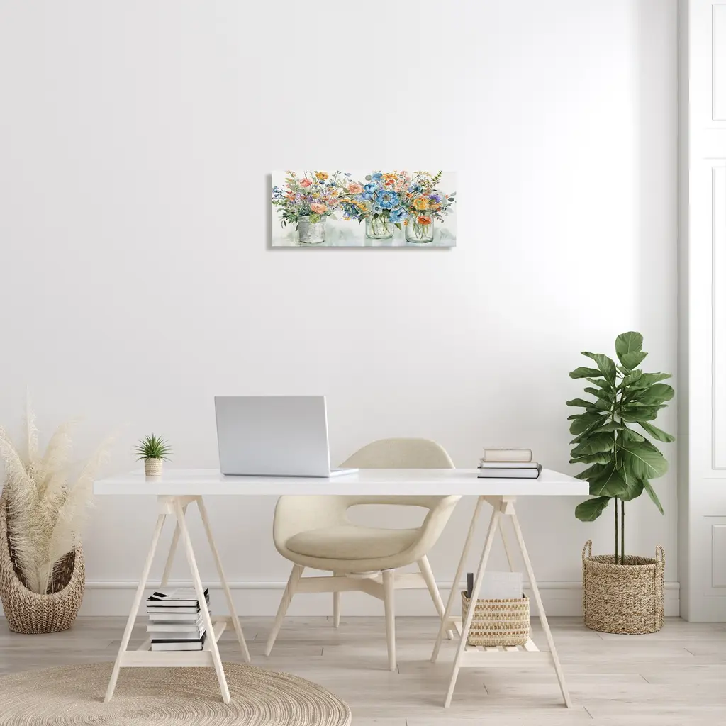 Stupell French Cottage Mason Glass Jar Flower Arrangement Bouquet Canvas Wall Art - Multi-Color - 24 X 10