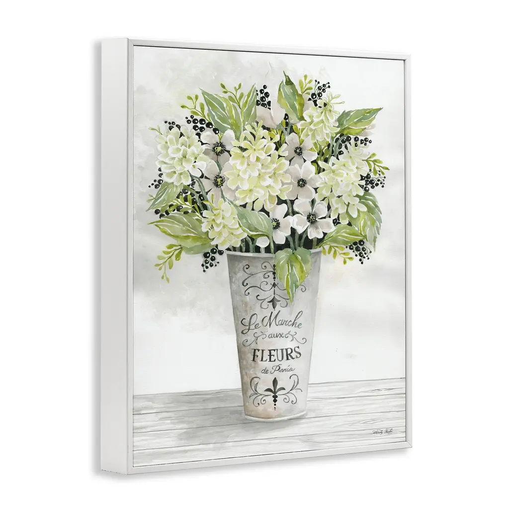 Stupell French Floral Greenery Bouquet Parisian Charm Flowers Framed Wall Art - White - 11 X 14 - White