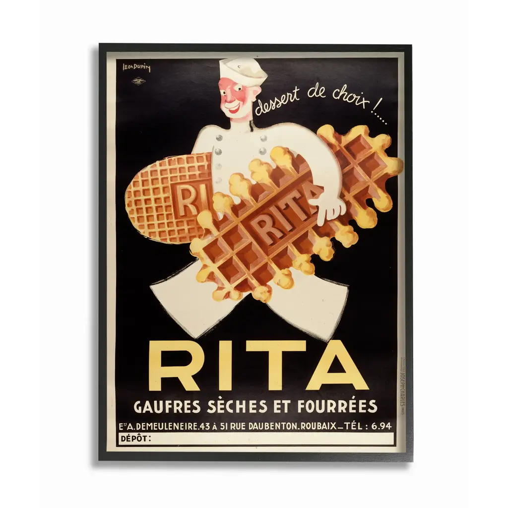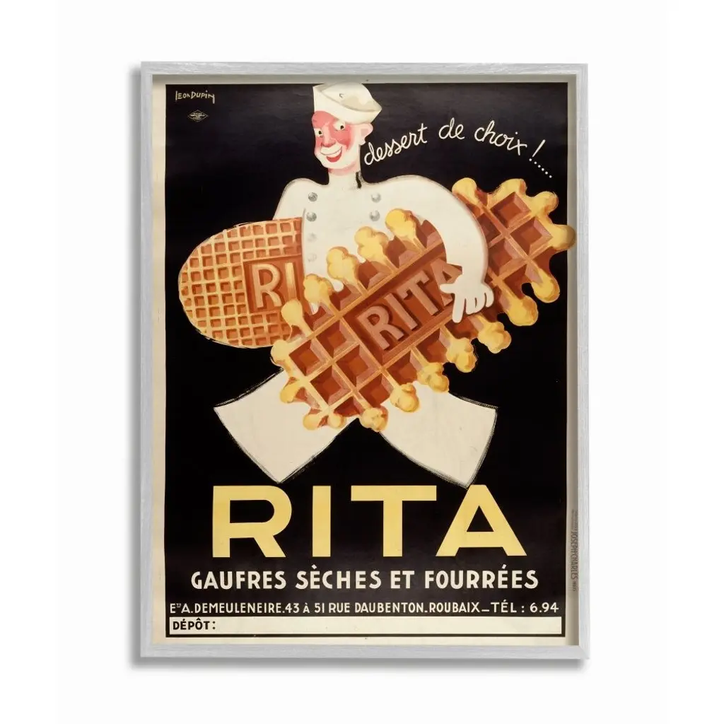 Stupell French Waffle Man Vintage Dessert Advertisement Framed Wall Art - Multi-Color - 11 X 14 - Grey