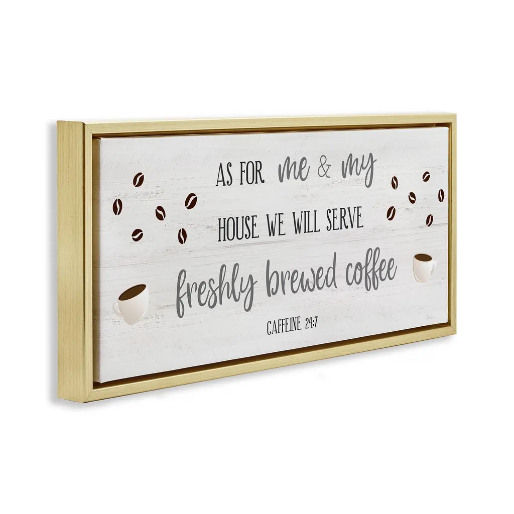 Elevate your home or office to the next level with Stupell Framed Floating Canvas Wall Art. Our premium hand-stretched canvas is mounted securely into a sturdy lightweight frame. The museum-style gap between the wrapped canvas and the box frame gives the illusion of floating artwork. Stupell Wall Art is made in the USA.Features: Dimensions: 25 x 1.7 x 11 Frame, 24 x 1.5 x 10 Canvas ArtFloating Frame Canvas Products are available in sizes 25"x11" and 31"x14". All Floating Frame Canvas Products have a 1.7" Depth.Wall Art is Ready to Hang with Hardware Free Hanging. No Installation required. For Easy Set Up Lean or Layer Artwork on Shelf or Against Wall. Artwork is Permently Fixed into the Frame.Our elevated 1.7" Thick Floating Frame is the perfect complement to our canvas style Wall Art. We use only the highest quality inks in house with industry leading printing solutions. Canvas is hand stretched over a durable wood foundation and then mounted securly into a Modern Box Frame. Made in the USA.Artwork Relates To: Phrase, Humor, Kitchen, Coffee, Mug, Spiritual, Religious, ProverbDesign by Natalie Carpentieri