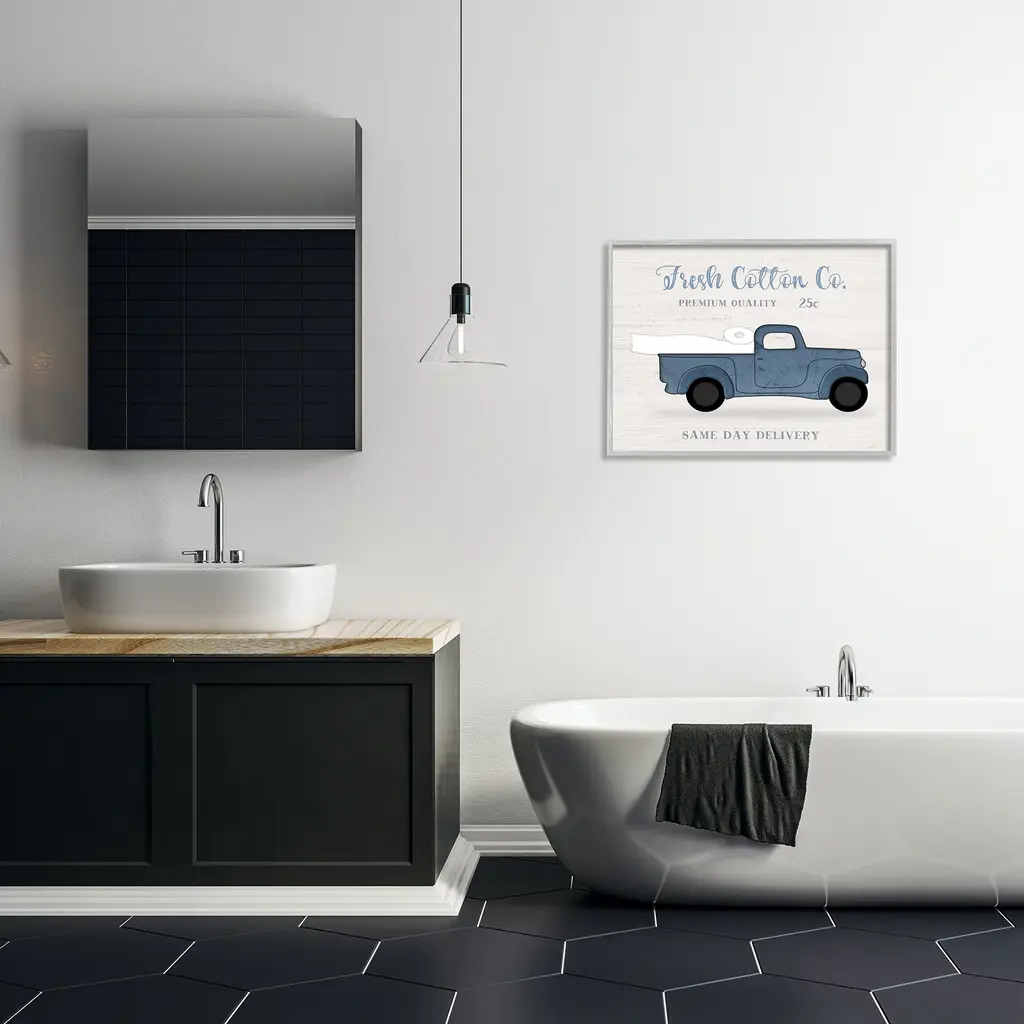 Stupell Fresh Cotton Co. Vintage Blue Truck Toilet Paper Framed Wall Art - Off-White - 14 X 11 - Black