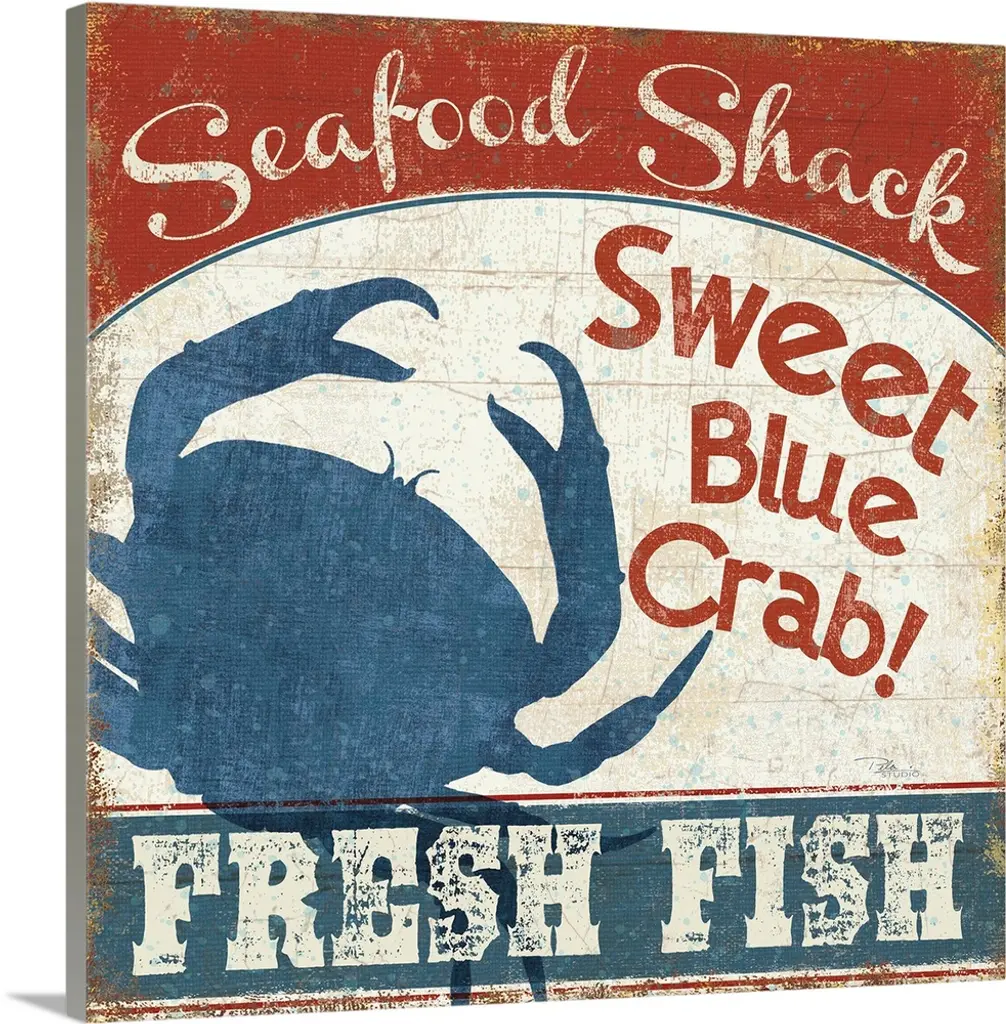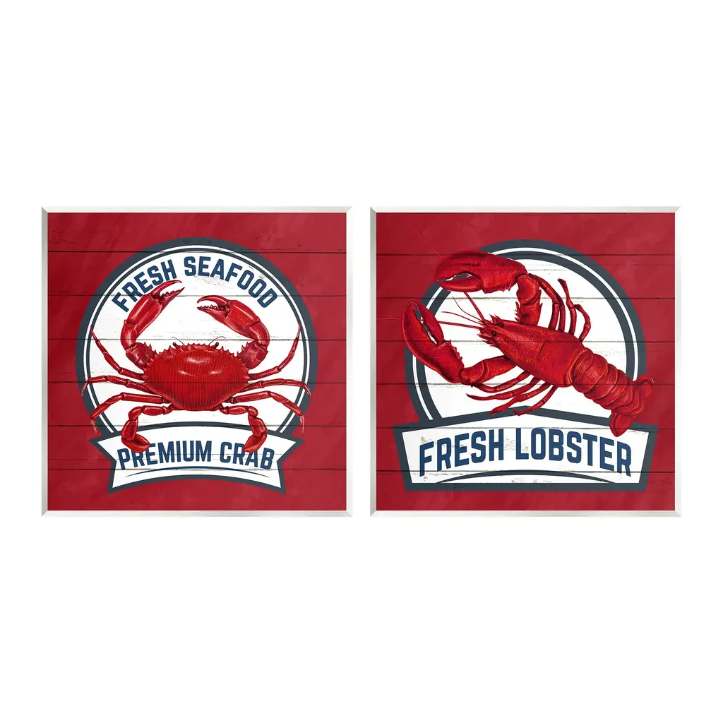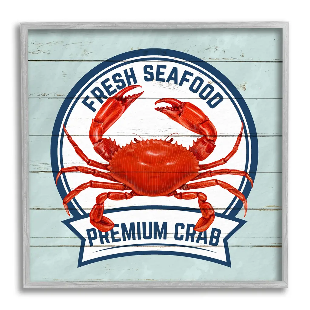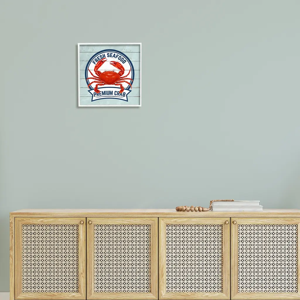 Stupell Fresh Seafood Crab Sign Quote Rustic Nautical Boathouse Framed Wall Art - Red - 17 X 17 - White