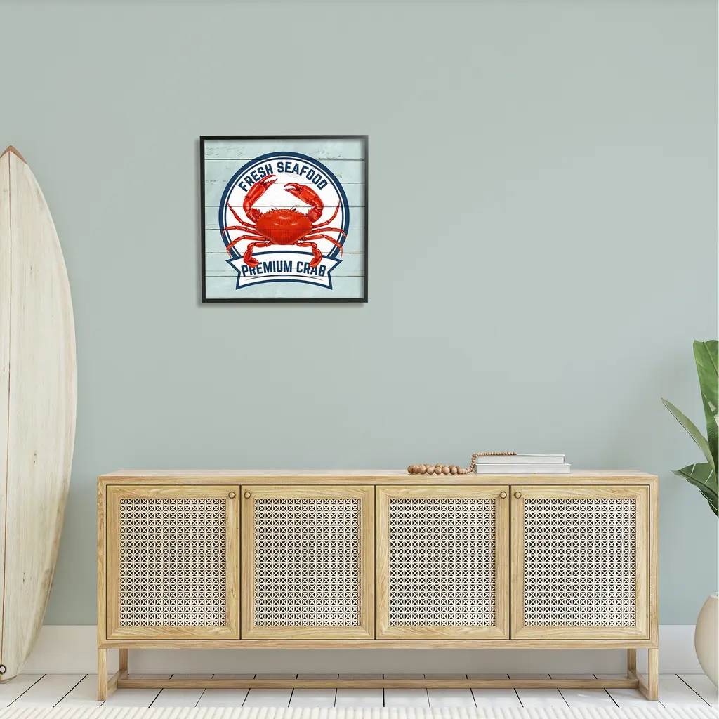 Stupell Fresh Seafood Crab Sign Quote Rustic Nautical Boathouse Framed Wall Art - Red - 24 X 24 - Black