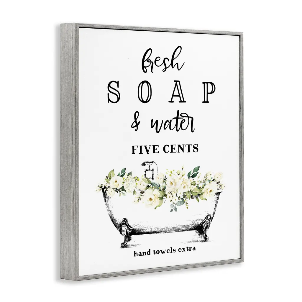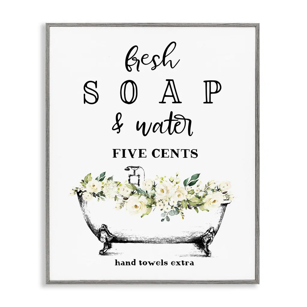 Stupell Fresh Soap And Water Bath Tub Bathroom Design Framed Wall Art, Design By Artist Lettered And Lined - Multi-Color - 16 X 20 - Grey