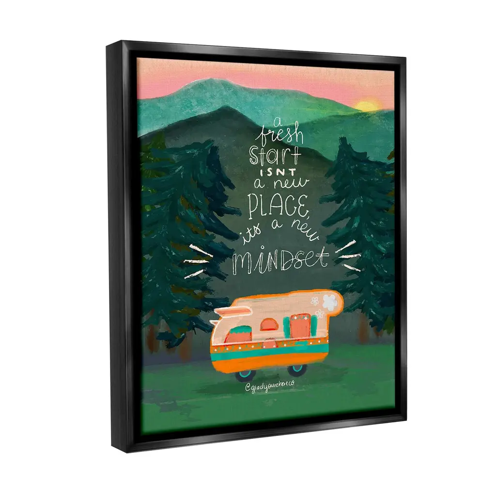 Elevate your home or office to the next level with Stupell Framed Floating Canvas Wall Art. Our premium hand-stretched canvas is mounted securely into a sturdy lightweight frame. The museum-style gap between the wrapped canvas and the box frame gives the illusion of floating artwork. Stupell Wall Art is made in the USA.Features: Dimensions: 17 x 1.7 x 21 Frame, 16 x 1.5 x 20 Canvas ArtFloating Frame Canvas Products are available in sizes 17"x21" and 25"x31". All Floating Frame Canvas Products have a 1.7" Depth.Wall Art is Ready to Hang with Hardware Free Hanging. No Installation required. For Easy Set Up Lean or Layer Artwork on Shelf or Against Wall. Artwork is Permently Fixed into the Frame.Our elevated 1.7" Thick Floating Frame is the perfect complement to our canvas style Wall Art. We use only the highest quality inks in house with industry leading printing solutions. Canvas is hand stretched over a durable wood foundation and then mounted securly into a Modern Box Frame. Made in the USA.Artwork Relates To: Plant, Tree, Vehicle, Nature, Woodland, Forest, Camping, Mountain, Phrase, A Fresh Start Isn't a New Place It's a New MindsetDesign by Glad You're Here Co.