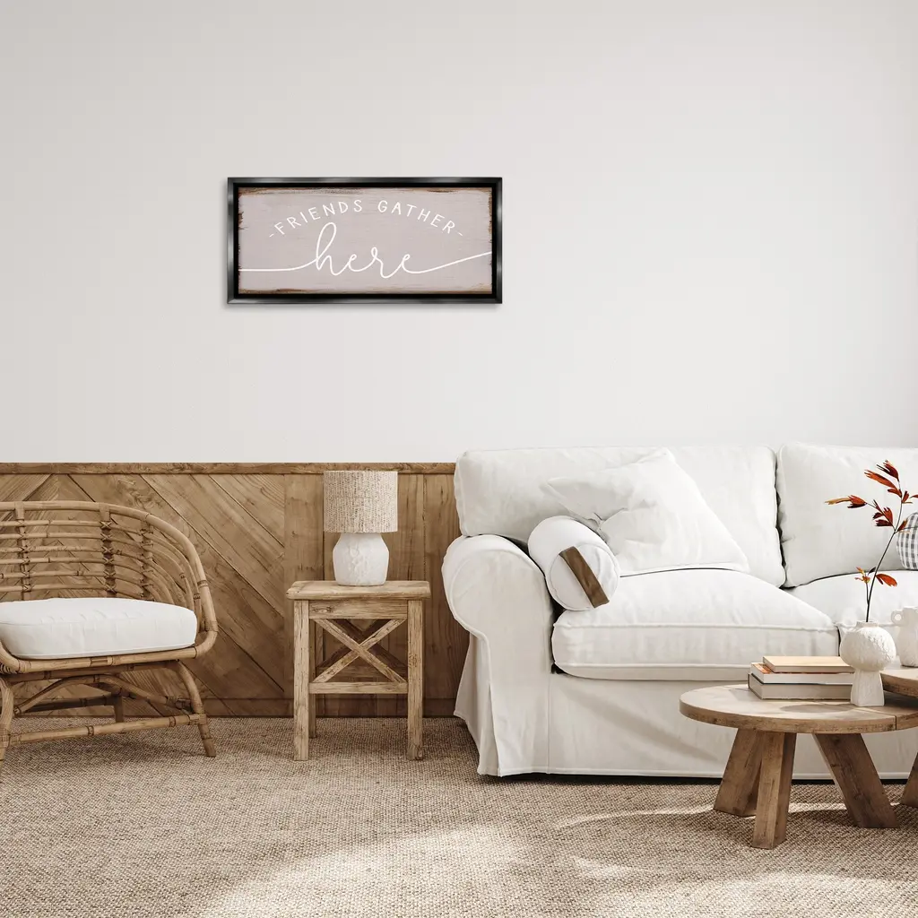 Stupell Friends Gather Here Charming Framed Floater Canvas Wall Art Design By Daphne Polselli - 25 X 11 - Black