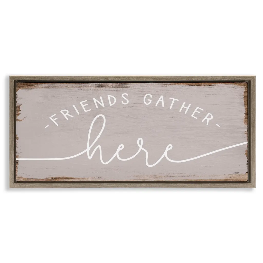 Stupell Friends Gather Here Charming Framed Floater Canvas Wall Art Design By Daphne Polselli - 31 X 14 - Grey