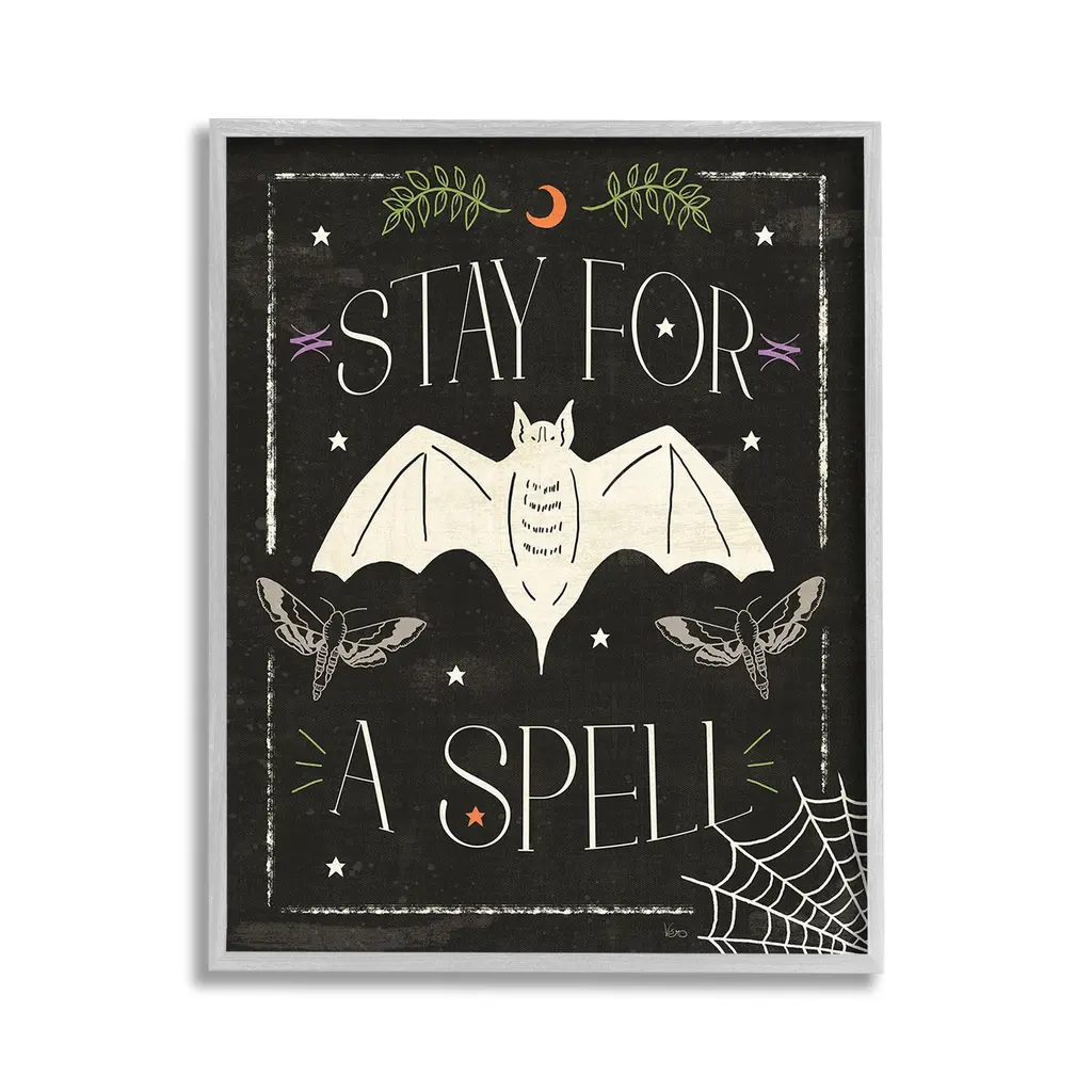 Our wall plaques start as high-quality lithograph prints mounted on durable 0.5-inch thick MDF wood. Each piece is hand finished and comes with a fresh layer of white foil on the sides to give it a crisp, clean look. Plaques arrive ready to hang without installation and come with removable plastic corners to keep them from damage in transit. Stupell Wall Art is made in the USA.Features: Dimensions: 10 x 0.5 x 15 InchesWall Plaque Product Sizes Include 10"x15" and 13"x19". All wall plaque products have a 0.5" Depth. Wall Art is Ready to Hang with Hardware Free Hanging. No installation required. For Easy Set Up Lean or Layer Artwork on Shelf or Against Wall.All of our wall plaques start off as high quality lithograph prints that are then mounted on durable 0.5 inch thick MDF wood. Each piece is hand finished and comes with a fresh layer of foil on the sides to give it a crisp clean look. Made In USA.Artwork Relates To: Festival, Halloween, Botanical, Leaf, Jack-o-Lantern, Pumpkin, Spider, Stars, Web, Moon, Fright This WayDesign by Veronique Charron