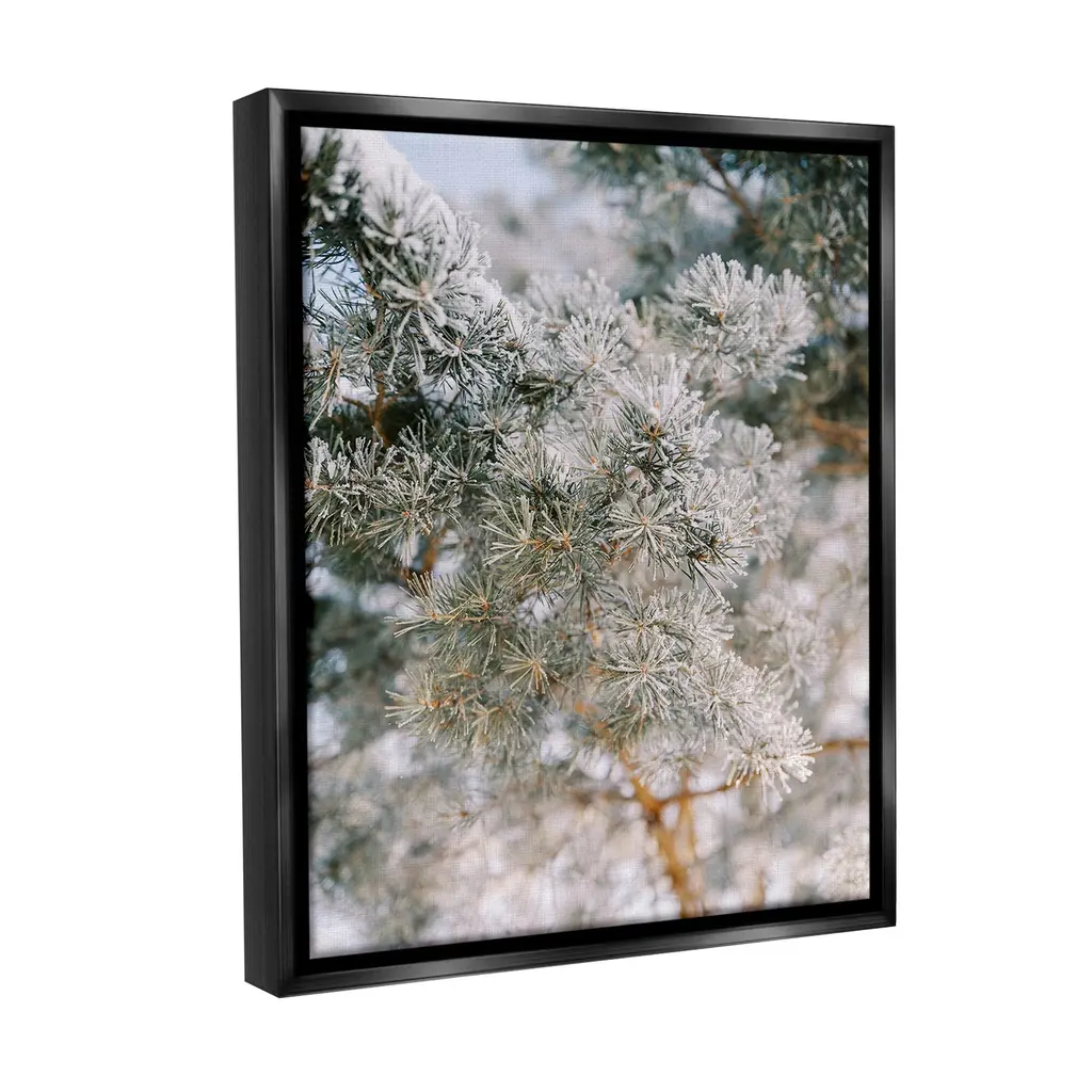 Elevate your home or office to the next level with Stupell Framed Floating Canvas Wall Art. Our premium hand-stretched canvas is mounted securely into a sturdy lightweight frame. The museum-style gap between the wrapped canvas and the box frame gives the illusion of floating artwork. Stupell Wall Art is made in the USA.Features: Dimensions: 17 x 1.7 x 21 Frame, 16 x 1.5 x 20 Canvas ArtFloating Frame Canvas Products are available in sizes 17"x21" and 25"x31". All Floating Frame Canvas Products have a 1.7" Depth.Wall Art is Ready to Hang with Hardware Free Hanging. No Installation required. For Easy Set Up Lean or Layer Artwork on Shelf or Against Wall. Artwork is Permently Fixed into the Frame.Our elevated 1.7" Thick Floating Frame is the perfect complement to our canvas style Wall Art. We use only the highest quality inks in house with industry leading printing solutions. Canvas is hand stretched over a durable wood foundation and then mounted securly into a Modern Box Frame. Made in the USA.Artwork Relates To: Plant, Tree, Ice, Nature, Fir, Frost, Snow, Conifer, Pine, Vegetation, Woodland, Snow, WinterDesign by Justine Milton
