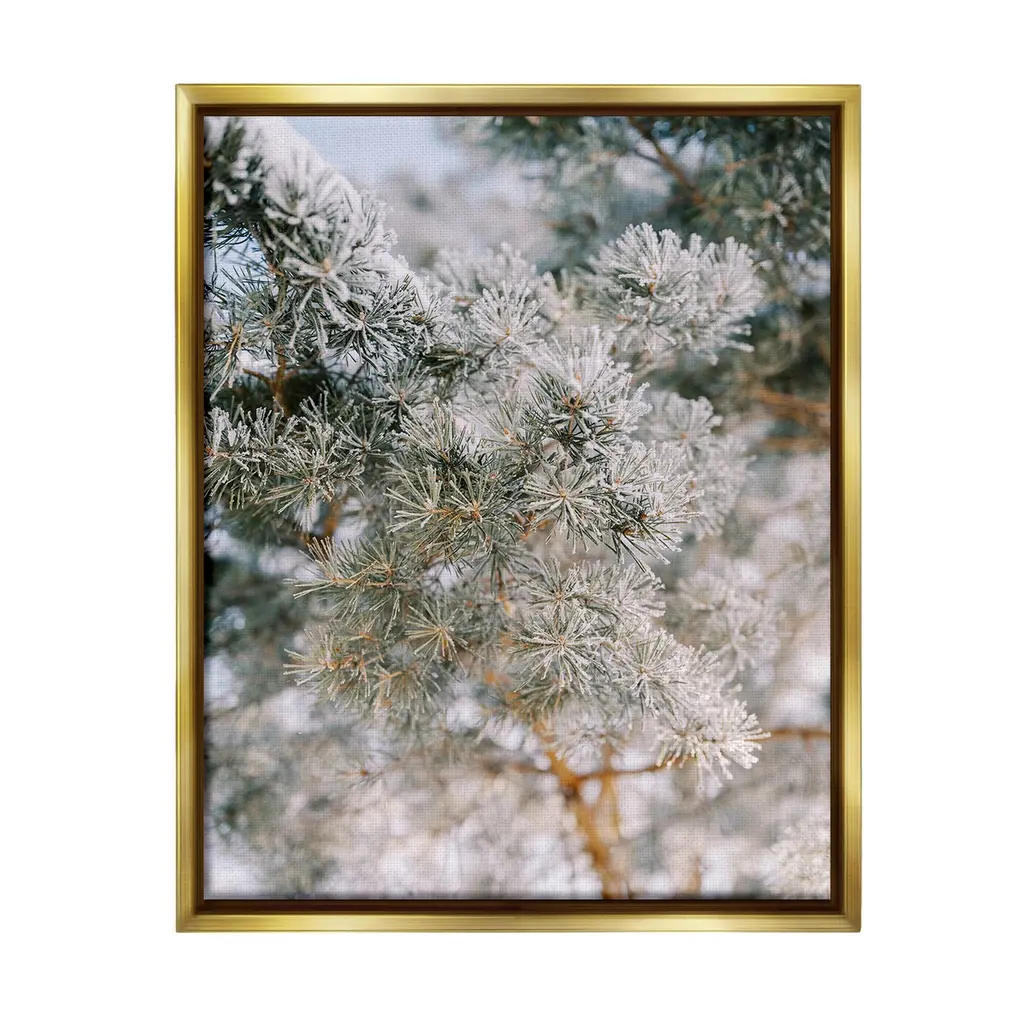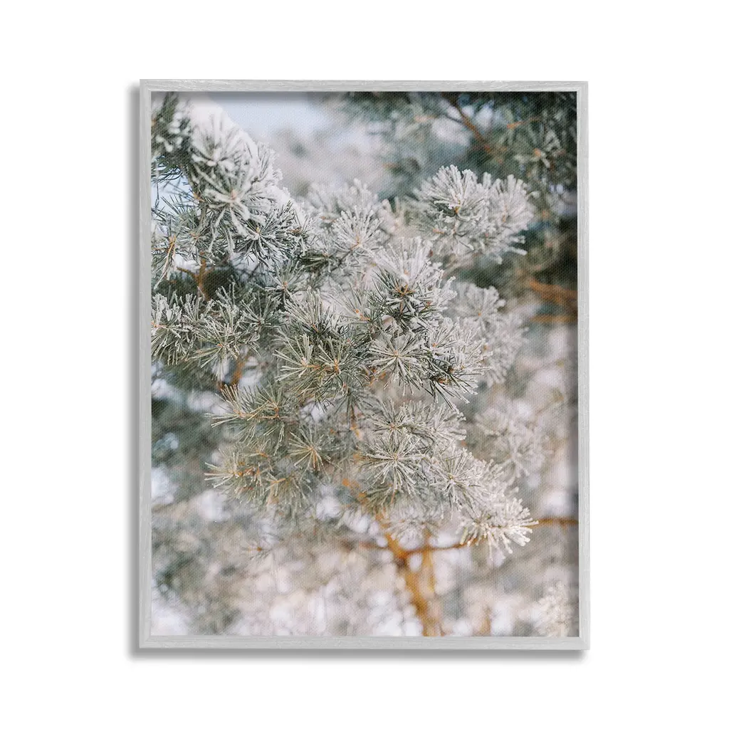 Elevate your home or office to the next level with Stupell Framed Floating Canvas Wall Art. Our premium hand-stretched canvas is mounted securely into a sturdy lightweight frame. The museum-style gap between the wrapped canvas and the box frame gives the illusion of floating artwork. Stupell Wall Art is made in the USA.Features: Dimensions: 17 x 1.7 x 21 Frame, 16 x 1.5 x 20 Canvas ArtFloating Frame Canvas Products are available in sizes 17"x21" and 25"x31". All Floating Frame Canvas Products have a 1.7" Depth.Wall Art is Ready to Hang with Hardware Free Hanging. No Installation required. For Easy Set Up Lean or Layer Artwork on Shelf or Against Wall. Artwork is Permently Fixed into the Frame.Our elevated 1.7" Thick Floating Frame is the perfect complement to our canvas style Wall Art. We use only the highest quality inks in house with industry leading printing solutions. Canvas is hand stretched over a durable wood foundation and then mounted securly into a Modern Box Frame. Made in the USA.Artwork Relates To: Plant, Tree, Ice, Nature, Fir, Frost, Snow, Conifer, Pine, Vegetation, Woodland, Snow, WinterDesign by Justine Milton