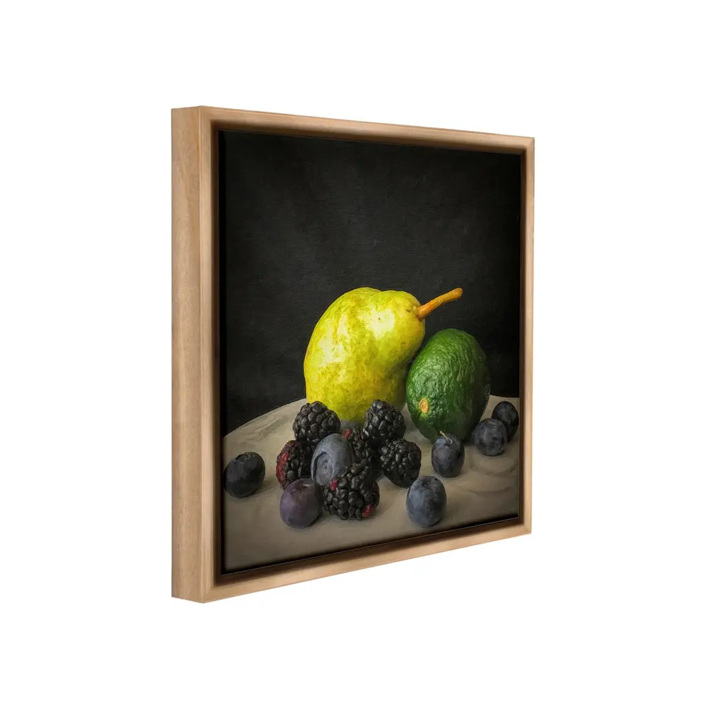 Elevate your home or office to the next level with Stupell Framed Floating Canvas Wall Art. Our premium hand-stretched canvas is mounted securely into a sturdy lightweight frame. The museum-style gap between the wrapped canvas and the box frame gives the illusion of floating artwork. Stupell Wall Art is made in the USA.Features: Dimensions: 18 x 1.7 x 18 Frame, 17 x 1.5 x 17 Canvas ArtFloating Frame Canvas Products are available in sizes 18"x18" and 25"x25". All Floating Frame Canvas Products have a 1.7" Depth.Wall Art is Ready to Hang with Hardware Free Hanging. No Installation required. For Easy Set Up Lean or Layer Artwork on Shelf or Against Wall. Artwork is Permently Fixed into the Frame.Our elevated 1.7" Thick Floating Frame is the perfect complement to our canvas style Wall Art. We use only the highest quality inks in house with industry leading printing solutions. Canvas is hand stretched over a durable wood foundation and then mounted securly into a Modern Box Frame. Made in the USA.Artwork Relates To: Food, Fruit, Plant, Produce, Pear, Blackberry, Blueberry, Berry, Still LifeDesign by GraffiTee Studios