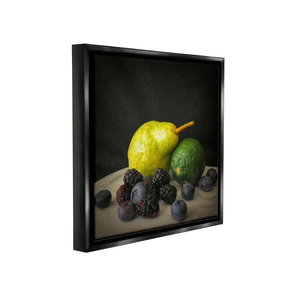 Elevate your home or office to the next level with Stupell Framed Floating Canvas Wall Art. Our premium hand-stretched canvas is mounted securely into a sturdy lightweight frame. The museum-style gap between the wrapped canvas and the box frame gives the illusion of floating artwork. Stupell Wall Art is made in the USA.Features: Dimensions: 18 x 1.7 x 18 Frame, 17 x 1.5 x 17 Canvas ArtFloating Frame Canvas Products are available in sizes 18"x18" and 25"x25". All Floating Frame Canvas Products have a 1.7" Depth.Wall Art is Ready to Hang with Hardware Free Hanging. No Installation required. For Easy Set Up Lean or Layer Artwork on Shelf or Against Wall. Artwork is Permently Fixed into the Frame.Our elevated 1.7" Thick Floating Frame is the perfect complement to our canvas style Wall Art. We use only the highest quality inks in house with industry leading printing solutions. Canvas is hand stretched over a durable wood foundation and then mounted securly into a Modern Box Frame. Made in the USA.Artwork Relates To: Food, Fruit, Plant, Produce, Pear, Blackberry, Blueberry, Berry, Still LifeDesign by GraffiTee Studios