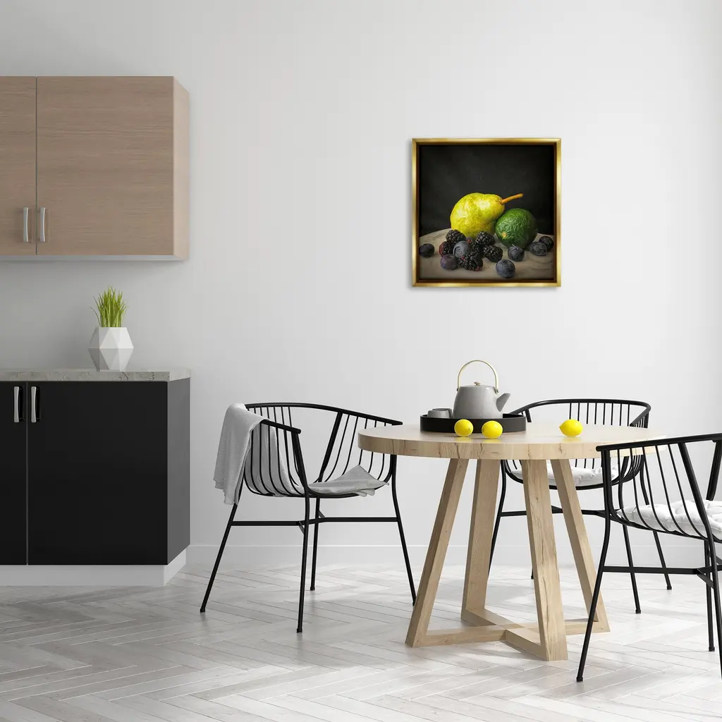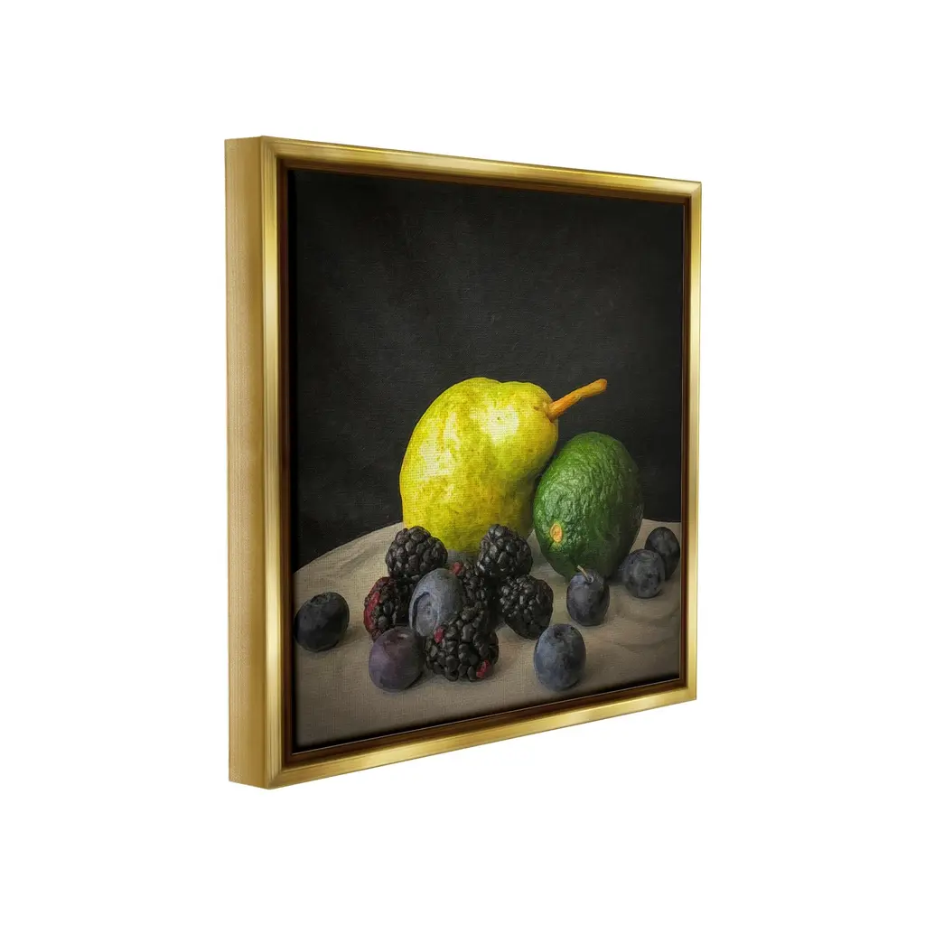 Elevate your home or office to the next level with Stupell Framed Floating Canvas Wall Art. Our premium hand-stretched canvas is mounted securely into a sturdy lightweight frame. The museum-style gap between the wrapped canvas and the box frame gives the illusion of floating artwork. Stupell Wall Art is made in the USA.Features: Dimensions: 18 x 1.7 x 18 Frame, 17 x 1.5 x 17 Canvas ArtFloating Frame Canvas Products are available in sizes 18"x18" and 25"x25". All Floating Frame Canvas Products have a 1.7" Depth.Wall Art is Ready to Hang with Hardware Free Hanging. No Installation required. For Easy Set Up Lean or Layer Artwork on Shelf or Against Wall. Artwork is Permently Fixed into the Frame.Our elevated 1.7" Thick Floating Frame is the perfect complement to our canvas style Wall Art. We use only the highest quality inks in house with industry leading printing solutions. Canvas is hand stretched over a durable wood foundation and then mounted securly into a Modern Box Frame. Made in the USA.Artwork Relates To: Food, Fruit, Plant, Produce, Pear, Blackberry, Blueberry, Berry, Still LifeDesign by GraffiTee Studios