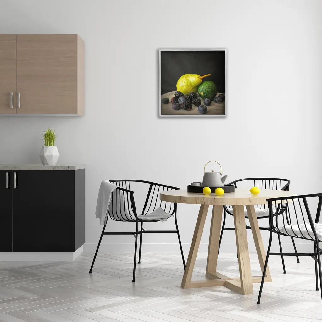 Add dimension to any room with our textured Framed Giclee Artwork. Our framed artwork is securely mounted into a 1.5-inch thick wood grain frame and ready to hang. Frames are available in three alluring styles: black, gray farmhouse and white. In addition, you should check out our oversized options if you want a statement piece. Stupell Wall Art is made in the USA.Features: Dimensions: 12 x 1.5 x 12 FramedFramed Giclee Product Sizes Include 12"x12", 17"x17", and 24"x24". Framed Giclee Products have a 1.5" Depth. Wall Art is Ready to Hang with Hardware Free Hanging. No installation required. For Easy Set Up Lean or Layer Artwork on Shelf or Against Wall.Our giclée prints are carefully mounted on a durable MDF backing, and then perfectly finished in a 1.5 inch thick woodgrain frame. Mounted frame colors include black, gray farmhouse and white. Made In USA.Artwork Relates To: Food, Fruit, Plant, Produce, Pear, Blackberry, Blueberry, Berry, Still LifeDesign by GraffiTee Studios