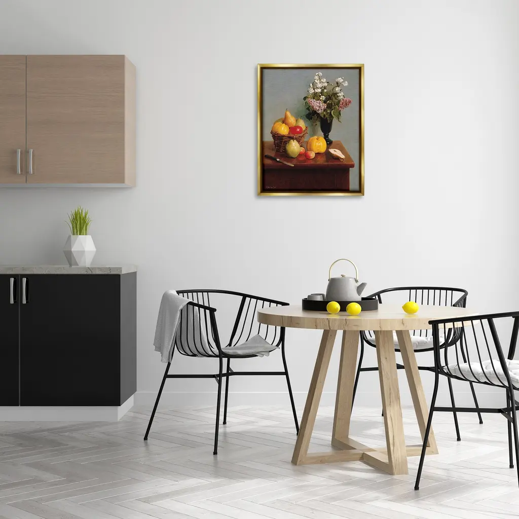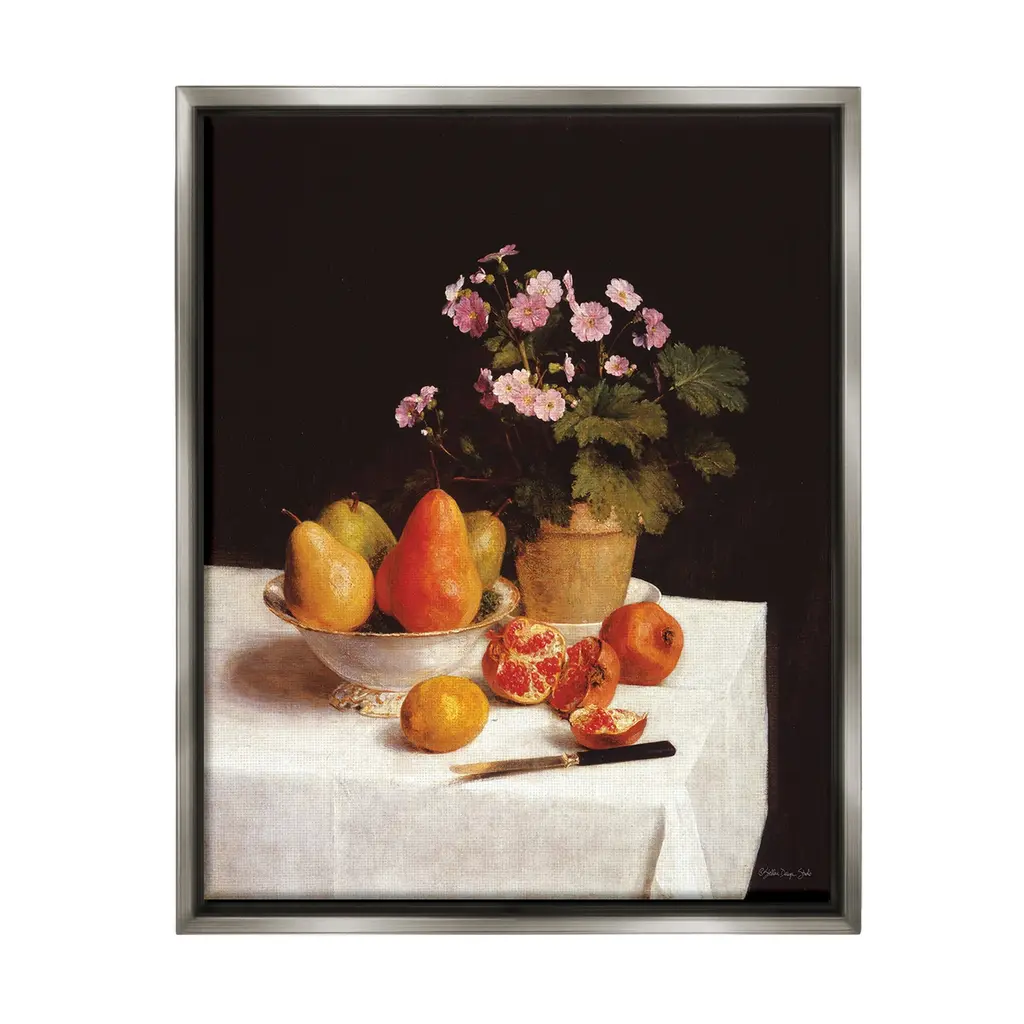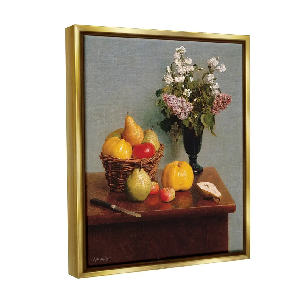 Stupell Fruit & Flowers Still Life Framed Floater Canvas Wall Art Design By Stellar Design Studio - 25 X 31 - Gold