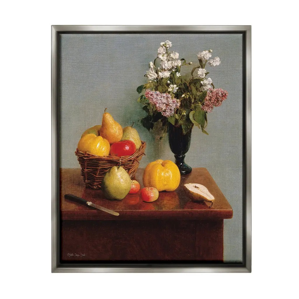 Stupell Fruit & Flowers Still Life Framed Giclee Art Design By Stellar Design Studio - 11 X 14 - Black