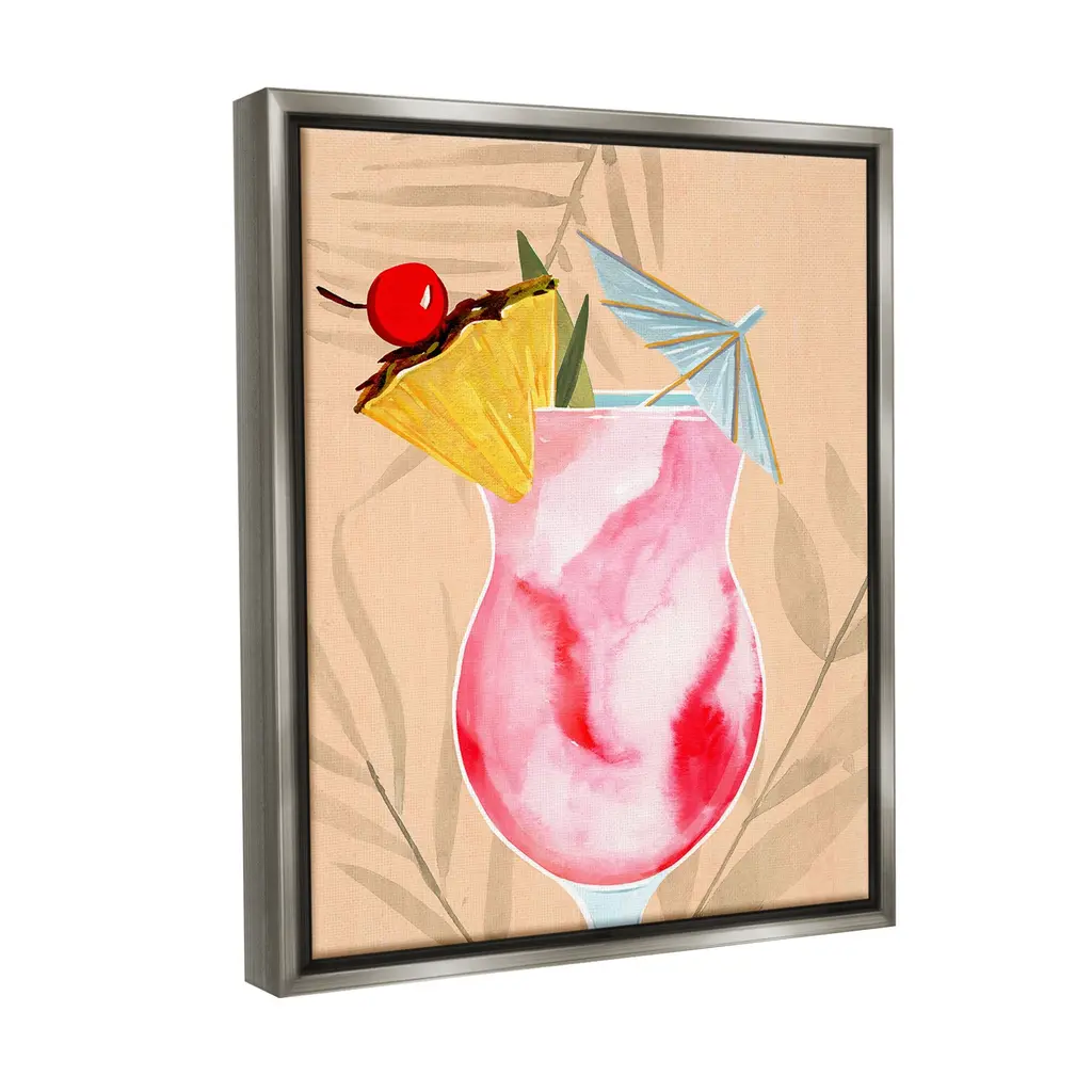 Elevate your home or office to the next level with Stupell Framed Floating Canvas Wall Art. Our premium hand-stretched canvas is mounted securely into a sturdy lightweight frame. The museum-style gap between the wrapped canvas and the box frame gives the illusion of floating artwork. Stupell Wall Art is made in the USA.Features: Dimensions: 17 x 1.7 x 21 Frame, 16 x 1.5 x 20 Canvas ArtFloating Frame Canvas Products are available in sizes 17"x21" and 25"x31". All Floating Frame Canvas Products have a 1.7" Depth.Wall Art is Ready to Hang with Hardware Free Hanging. No Installation required. For Easy Set Up Lean or Layer Artwork on Shelf or Against Wall. Artwork is Permently Fixed into the Frame.Our elevated 1.7" Thick Floating Frame is the perfect complement to our canvas style Wall Art. We use only the highest quality inks in house with industry leading printing solutions. Canvas is hand stretched over a durable wood foundation and then mounted securly into a Modern Box Frame. Made in the USA.Artwork Relates To: Alcohol, Beverage, Cocktail, Fruit, Plant, Citrus, Grapefruit, Liquor, Wine, Modern, TropicalDesign by Annie Warren