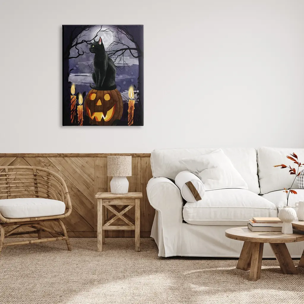 Stupell Full Moon Halloween Night Spooky Black Cat Jack-O'-Lantern Canvas Wall Art - Orange - 30 X 40