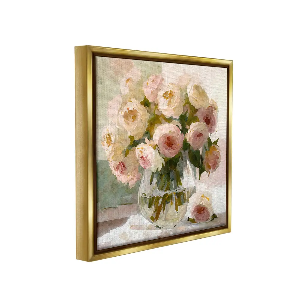 Elevate your home or office to the next level with Stupell Framed Floating Canvas Wall Art. Our premium hand-stretched canvas is mounted securely into a sturdy lightweight frame. The museum-style gap between the wrapped canvas and the box frame gives the illusion of floating artwork. Stupell Wall Art is made in the USA.Features: Dimensions: 18 x 1.7 x 18 Frame, 17 x 1.5 x 17 Canvas ArtFloating Frame Canvas Products are available in sizes 18"x18" and 25"x25". All Floating Frame Canvas Products have a 1.7" Depth.Wall Art is Ready to Hang with Hardware Free Hanging. No Installation required. For Easy Set Up Lean or Layer Artwork on Shelf or Against Wall. Artwork is Permently Fixed into the Frame.Our elevated 1.7" Thick Floating Frame is the perfect complement to our canvas style Wall Art. We use only the highest quality inks in house with industry leading printing solutions. Canvas is hand stretched over a durable wood foundation and then mounted securly into a Modern Box Frame. Made in the USA.Artwork Relates To: Flower, Flower Arrangement, Plant, Vase, Bouquet, Floral, Rose, Still Life, AbstractDesign by Gina Kelly