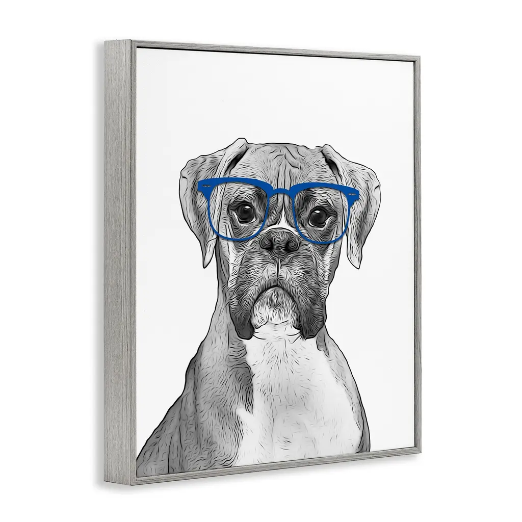 Add dimension to any room with our textured Framed Giclee Artwork. Our framed artwork is securely mounted into a 1.5-inch thick wood grain frame and ready to hang. Frames are available in three alluring styles: black, gray farmhouse and white. In addition, you should check out our oversized options if you want a statement piece. Stupell Wall Art is made in the USA.Features: Dimensions: 11 x 1.5 x 14 FramedFramed Giclee Sizes Include Standard: 11 x 1.5 x 14 Large: 16 x 1.5 x 20 Oversized: 24 x 1.5 x 30Wall Art is Ready to Hang - No Installation or Hardware Needed. For Easy Set Up Lean or Layer Artwork on Shelf or Against Wall.Our giclée prints are carefully mounted on a durable MDF backing, and then perfectly finished in a 1.5 inch thick woodgrain frame. Mounted frame colors include black, gray farmhouse and white. Made In USA.Artwork Relates To: Glasses, Animal, Canine, Mammal, Dog, Pet, BoxerDesign by Annalisa Latella