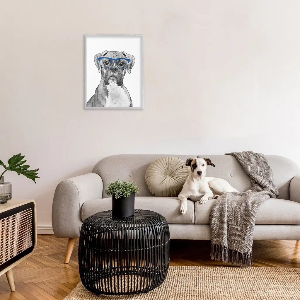 Add dimension to any room with our textured Framed Giclee Artwork. Our framed artwork is securely mounted into a 1.5-inch thick wood grain frame and ready to hang. Frames are available in three alluring styles: black, gray farmhouse and white. In addition, you should check out our oversized options if you want a statement piece. Stupell Wall Art is made in the USA.Features: Dimensions: 11 x 1.5 x 14 FramedFramed Giclee Sizes Include Standard: 11 x 1.5 x 14 Large: 16 x 1.5 x 20 Oversized: 24 x 1.5 x 30Wall Art is Ready to Hang - No Installation or Hardware Needed. For Easy Set Up Lean or Layer Artwork on Shelf or Against Wall.Our giclée prints are carefully mounted on a durable MDF backing, and then perfectly finished in a 1.5 inch thick woodgrain frame. Mounted frame colors include black, gray farmhouse and white. Made In USA.Artwork Relates To: Glasses, Animal, Canine, Mammal, Dog, Pet, BoxerDesign by Annalisa Latella