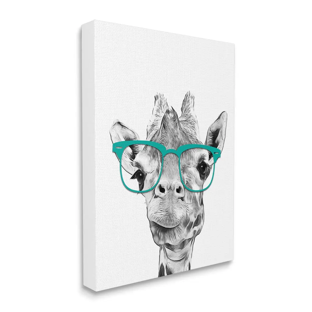 We create our stretched canvas to the highest standards. Using only the highest quality inks and canvas on Mimaki printers, we hand-cut and stretch each piece over a 1.5-inch thick wooden frame for hanging. As a result, the art comes ready to hang on the sturdy ledge with no installation required. Stupell Wall Art is made in the USA.Features: Dimensions: 16 x 1.5 x 20 InchesStretched Canvas Sizes Include Standard: 16 x 1.5 x 20 Large: 20 x 1.5 x 30 X-Large: 30 x 1.5 x 40 Oversized: 36 x 1.5 x 48Wall Art is Ready to Hang - No Installation or Hardware Needed. For Easy Set Up Lean or Layer Artwork on Shelf or Against Wall.Our stretched canvas is created with the highest standards. We use only the highest quality inks and canvas on our in house Mimaki printers, and then hand cut and stretch each piece over a 1.5 inch thick wooden frame for hanging. Made In USA.Artwork Relates To: Glasses, Animal, Mammal, Wildlife, GiraffeDesign by Annalisa Latella