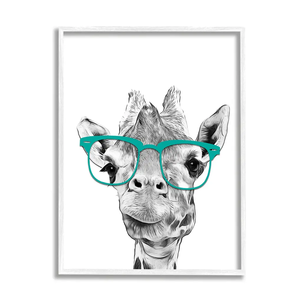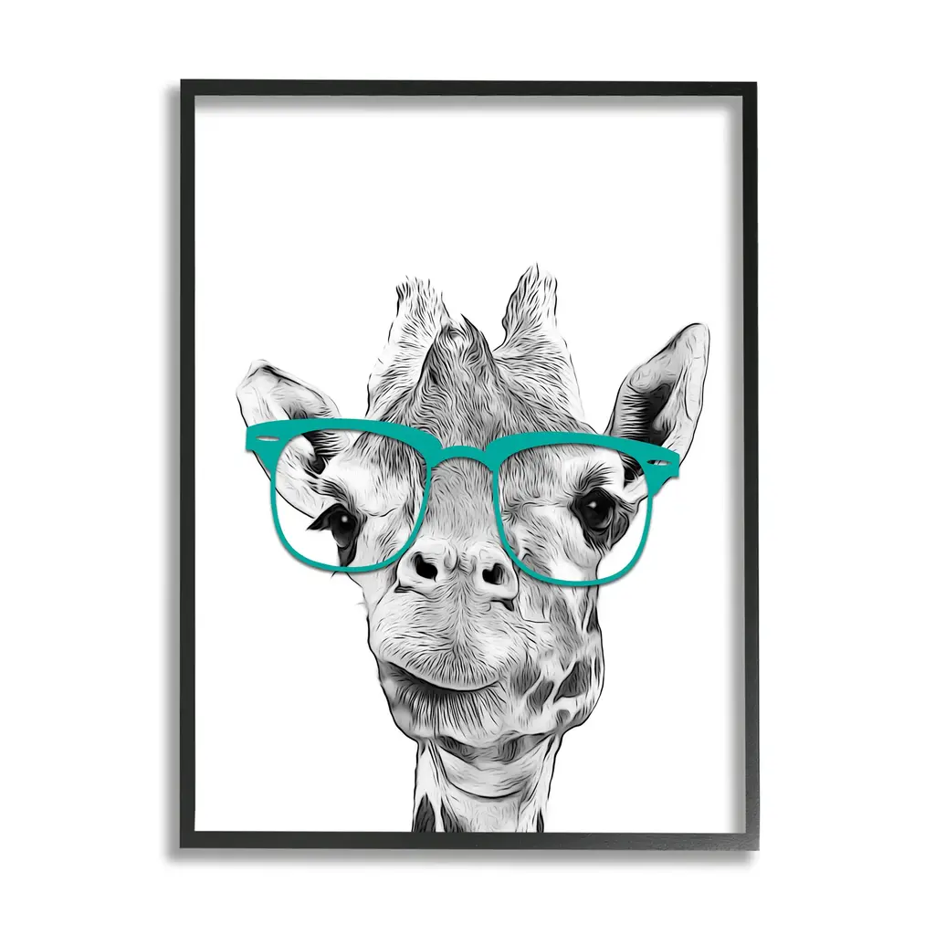 Add dimension to any room with our textured Framed Giclee Artwork. Our framed artwork is securely mounted into a 1.5-inch thick wood grain frame and ready to hang. Frames are available in three alluring styles: black, gray farmhouse and white. In addition, you should check out our oversized options if you want a statement piece. Stupell Wall Art is made in the USA.Features: Dimensions: 11 x 1.5 x 14 FramedFramed Giclee Sizes Include Standard: 11 x 1.5 x 14 Large: 16 x 1.5 x 20 Oversized: 24 x 1.5 x 30Wall Art is Ready to Hang - No Installation or Hardware Needed. For Easy Set Up Lean or Layer Artwork on Shelf or Against Wall.Our giclée prints are carefully mounted on a durable MDF backing, and then perfectly finished in a 1.5 inch thick woodgrain frame. Mounted frame colors include black, gray farmhouse and white. Made In USA.Artwork Relates To: Glasses, Animal, Mammal, Wildlife, GiraffeDesign by Annalisa Latella