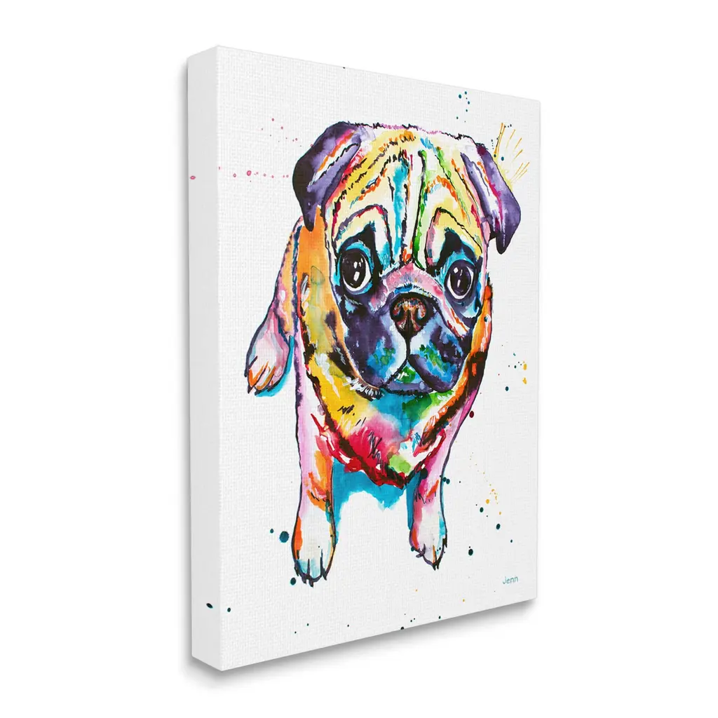 Stupell Fun Hued Pug Puppy Animal Canvas Wall Art By Jen Seeley - 16 X 20