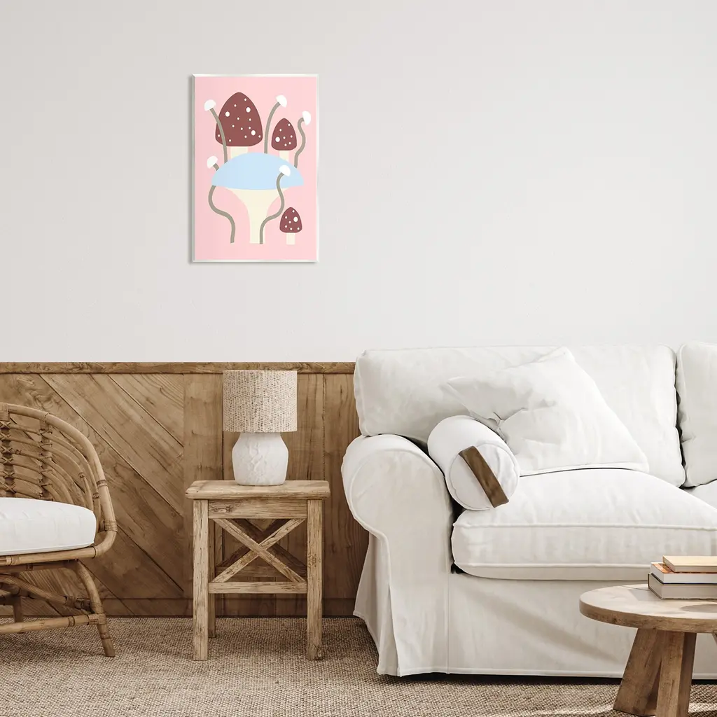 Our wall plaques start as high-quality lithograph prints mounted on durable 0.5-inch thick MDF wood. Each piece is hand finished and comes with a fresh layer of white foil on the sides to give it a crisp, clean look. Plaques arrive ready to hang without installation and come with removable plastic corners to keep them from damage in transit. Wall Art is made in the USA.Features: Dimensions: 10 x 0.5 x 15 InchesWall Plaque Sizes Include Standard: 10 x 0.5 x 15 Oversized: 13 x 0.5 x 19Wall Art is Ready to Hang with Hardware Free Hanging. No installation required. For Easy Set Up Lean or Layer Artwork on Shelf or Against Wall.All of our wall plaques start off as high quality lithograph prints that are then mounted on durable 0.5 inch thick MDF wood. Each piece is hand finished and comes with a fresh layer of foil on the sides to give it a crisp clean look. Made In USA.Artwork Relates To: Fungus, Mushroom, Plant, Abstract, Pop, ModernDesign by Lil' Rue