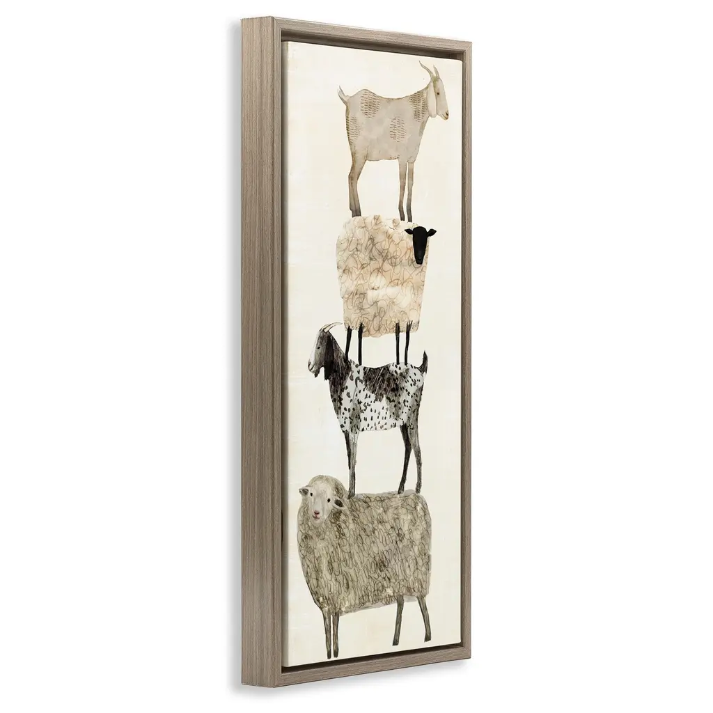 Elevate your home or office to the next level with Stupell Framed Floating Canvas Wall Art. Our premium hand-stretched canvas is mounted securely into a sturdy lightweight frame. The museum-style gap between the wrapped canvas and the box frame gives the illusion of floating artwork. Stupell Wall Art is made in the USA.Features: Dimensions: 11 x 1.7 x 25 Frame, 10 x 1.5 x 24 Canvas ArtFloating Frame Canvas Products are available in sizes 11"x25" and 14"x31". All Floating Frame Canvas Products have a 1.7" Depth.Wall Art is Ready to Hang with Hardware Free Hanging. No Installation required. For Easy Set Up Lean or Layer Artwork on Shelf or Against Wall. Artwork is Permently Fixed into the Frame.Our elevated 1.7" Thick Floating Frame is the perfect complement to our canvas style Wall Art. We use only the highest quality inks in house with industry leading printing solutions. Canvas is hand stretched over a durable wood foundation and then mounted securly into a Modern Box Frame. Made in the USA.Artwork Relates To: Animal, Farm, Country, Goat, Sheep, Rustic, TraditionalDesign by Victoria Borges