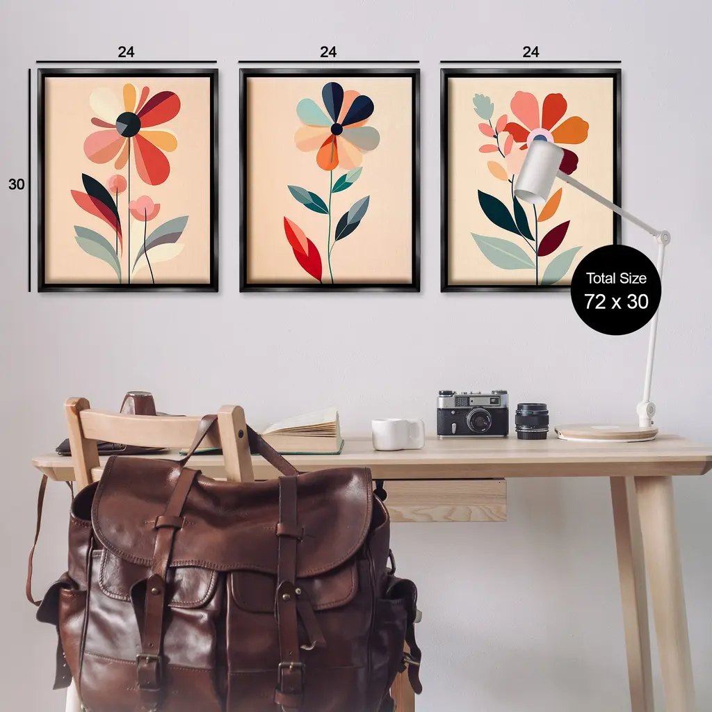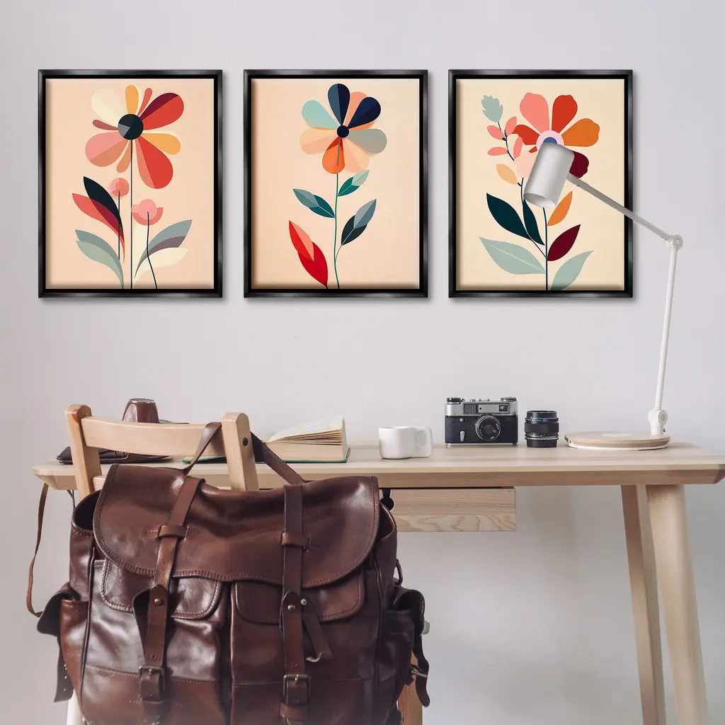 Elevate your home or office to the next level with Stupell Framed Floating Canvas Wall Art. Our premium hand-stretched canvas is mounted securely into a sturdy lightweight frame. The museum-style gap between the wrapped canvas and the box frame gives the illusion of floating artwork. Stupell Wall Art is made in the USA.Features: Dimensions: 3 Piece Set, Each Frame is 17 x 1.7 x 21Three Piece Floater Framed Canvas are available as 17x21 or 25x31 Panels. All Floater Frame Products have a 1.7" Depth.Wall Art is Ready to Hang with Hardware Free Hanging. No Installation required. For Easy Set Up Lean or Layer Artwork on Shelf or Against Wall. Artwork is Permently Fixed into the Frame.Our elevated 1.7" Thick Floating Frame is the perfect complement to our canvas style Wall Art. We use only the highest quality inks in house with industry leading printing solutions. Canvas is hand stretched over a durable wood foundation and then mounted securly into a Modern Box Frame. Made in the USA.Artwork Relates To: Floral, Pattern, Modern, Daisy, Flower, Plant, Leaf, Botanical, Abstract, ModernDesign by Walker Noble