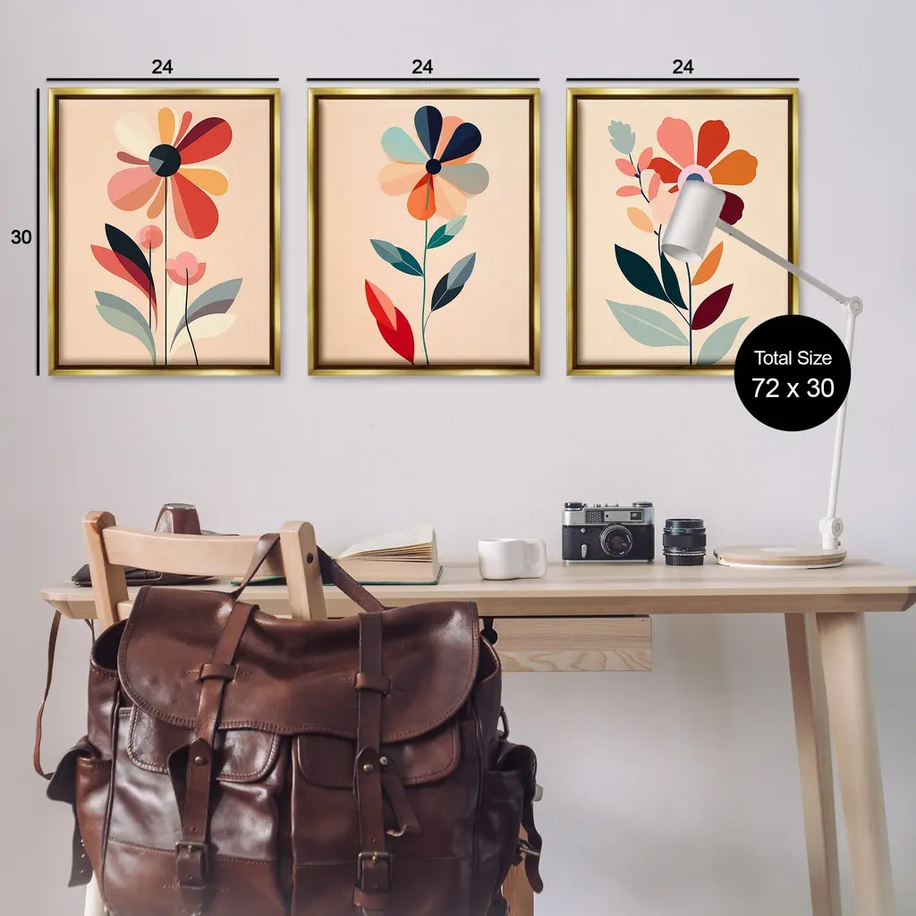 Elevate your home or office to the next level with Stupell Framed Floating Canvas Wall Art. Our premium hand-stretched canvas is mounted securely into a sturdy lightweight frame. The museum-style gap between the wrapped canvas and the box frame gives the illusion of floating artwork. Stupell Wall Art is made in the USA.Features: Dimensions: 3 Piece Set, Each Frame is 17 x 1.7 x 21Three Piece Floater Framed Canvas are available as 17x21 or 25x31 Panels. All Floater Frame Products have a 1.7" Depth.Wall Art is Ready to Hang with Hardware Free Hanging. No Installation required. For Easy Set Up Lean or Layer Artwork on Shelf or Against Wall. Artwork is Permently Fixed into the Frame.Our elevated 1.7" Thick Floating Frame is the perfect complement to our canvas style Wall Art. We use only the highest quality inks in house with industry leading printing solutions. Canvas is hand stretched over a durable wood foundation and then mounted securly into a Modern Box Frame. Made in the USA.Artwork Relates To: Floral, Pattern, Modern, Daisy, Flower, Plant, Leaf, Botanical, Abstract, ModernDesign by Walker Noble