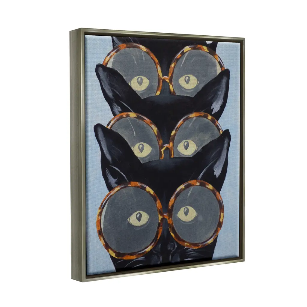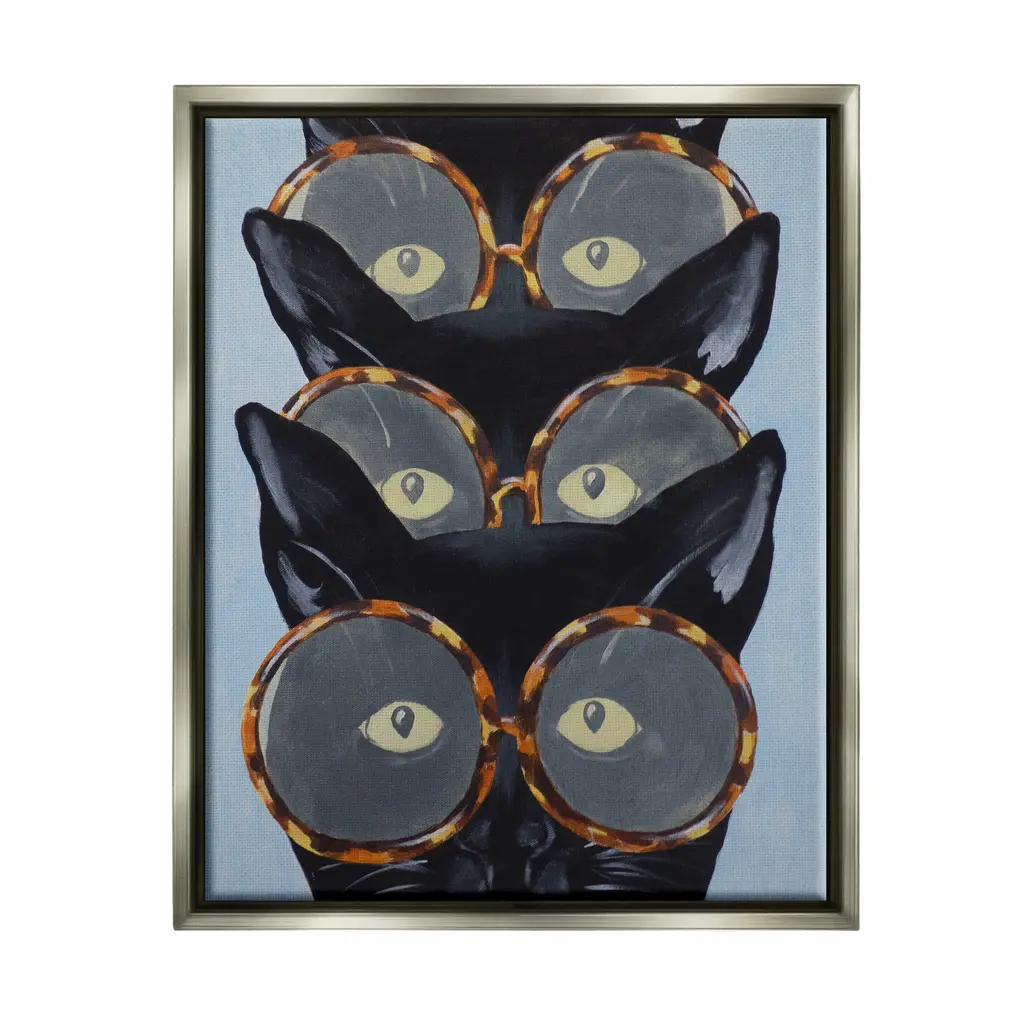 Elevate your home or office to the next level with Stupell Framed Floating Canvas Wall Art. Our premium hand-stretched canvas is mounted securely into a sturdy lightweight frame. The museum-style gap between the wrapped canvas and the box frame gives the illusion of floating artwork. Stupell Wall Art is made in the USA.Features: Dimensions: 17 x 1.7 x 21 Frame, 16 x 1.5 x 20 Canvas ArtFloating Frame Sizes Include Standard: 17 x 1.7 x 21 Oversized: 25 x 1.7 x 31Wall Art is Ready to Hang - No Installation or Hardware Needed. For Easy Set Up Lean or Layer Artwork on Shelf or Against Wall.Our elevated 1.7" Thick Floating Frame is the perfect complement to our canvas style Wall Art. We use only the highest quality inks in house with industry leading printing solutions. Canvas is hand stretched over a durable wood foundation and then mounted securly into a Modern Box Frame. Made in the USA.Artwork Relates To: Animal, Cat, Mammal, Pet, Black Cat, GlassesDesign by Coco de Paris