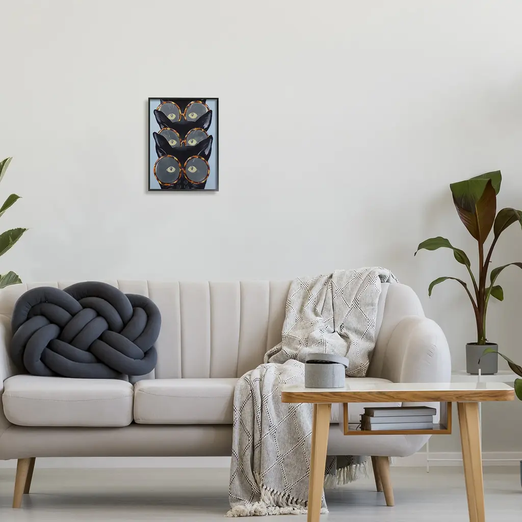 Add dimension to any room with our textured Framed Giclee Artwork. Our framed artwork is securely mounted into a 1.5-inch thick wood grain frame and ready to hang. Frames are available in three alluring styles: black, gray farmhouse and white. In addition, you should check out our oversized options if you want a statement piece. Stupell Wall Art is made in the USA.Features: Dimensions: 11 x 1.5 x 14 FramedFramed Giclee Sizes Include Standard: 11 x 1.5 x 14 Large: 16 x 1.5 x 20 Oversized: 24 x 1.5 x 30Wall Art is Ready to Hang - No Installation or Hardware Needed. For Easy Set Up Lean or Layer Artwork on Shelf or Against Wall.Our giclée prints are carefully mounted on a durable MDF backing, and then perfectly finished in a 1.5 inch thick woodgrain frame. Mounted frame colors include black, gray farmhouse and white. Made In USA.Artwork Relates To: Animal, Cat, Mammal, Pet, Black Cat, GlassesDesign by Coco de Paris