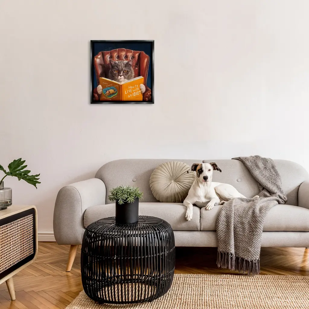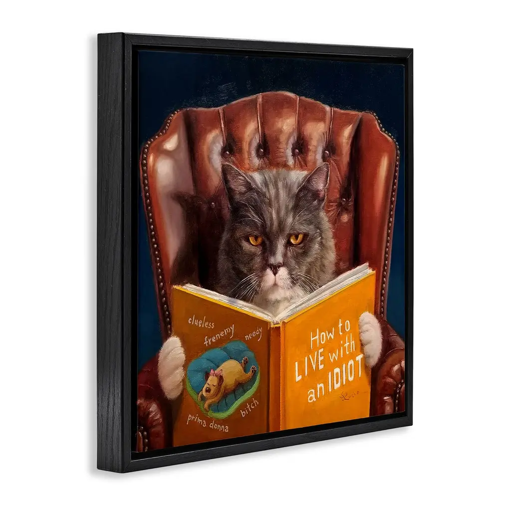 Elevate your home or office to the next level with Stupell Framed Floating Canvas Wall Art. Our premium hand-stretched canvas is mounted securely into a sturdy lightweight frame. The museum-style gap between the wrapped canvas and the box frame gives the illusion of floating artwork. Stupell Wall Art is made in the USA.Features: Dimensions: 18 x 1.7 x 18 Frame, 17 x 1.5 x 17 Canvas ArtFloating Frame Canvas Products are available in sizes 18"x18" and 25"x25". All Floating Frame Canvas Products have a 1.7" Depth.Wall Art is Ready to Hang with Hardware Free Hanging. No Installation required. For Easy Set Up Lean or Layer Artwork on Shelf or Against Wall. Artwork is Permently Fixed into the Frame.Our elevated 1.7" Thick Floating Frame is the perfect complement to our canvas style Wall Art. We use only the highest quality inks in house with industry leading printing solutions. Canvas is hand stretched over a durable wood foundation and then mounted securly into a Modern Box Frame. Made in the USA.Artwork Relates To: Animal, Cat, Humor, Reading, Book, ChairDesign by Lucia Heffernan