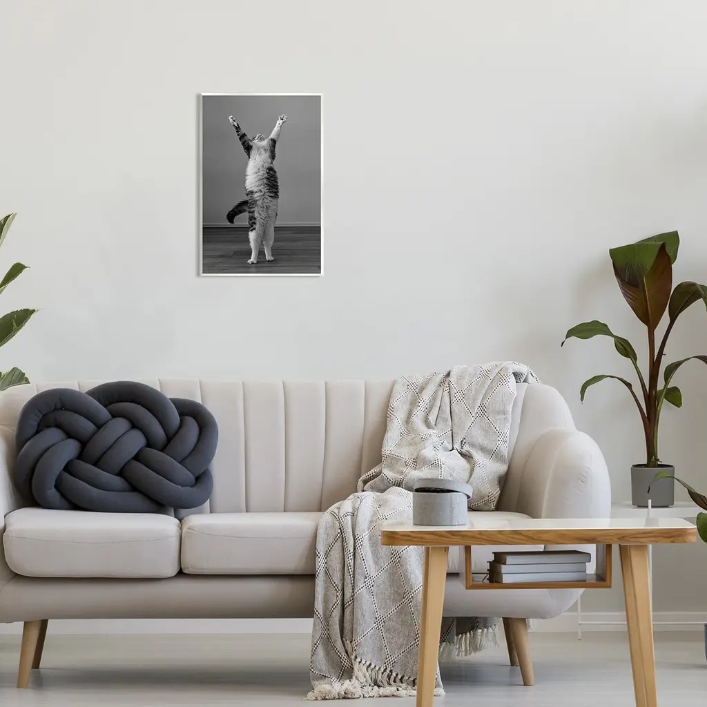 Stupell Funny Cat Victory Pose Wall Plaque Art Design By Kazutoshi Ono - 13 X 19