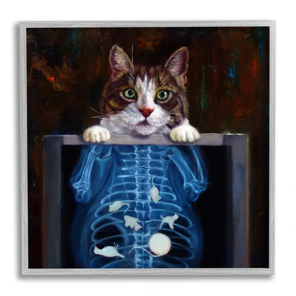 Add dimension to any room with our textured Framed Giclee Artwork. Our framed artwork is securely mounted into a 1.5-inch thick wood grain frame and ready to hang. Frames are available in three alluring styles: black, gray farmhouse and white. In addition, you should check out our oversized options if you want a statement piece. Stupell Wall Art is made in the USA.Features: Dimensions: 12 x 1.5 x 12 FramedFramed Giclee Sizes Include Standard: 12 x 1.5 x 12 Large: 17 x 1.5 x 17 Oversized: 24 x 1.5 x 24Wall Art is Ready to Hang - No Installation or Hardware Needed. For Easy Set Up Lean or Layer Artwork on Shelf or Against Wall.Our giclée prints are carefully mounted on a durable MDF backing, and then perfectly finished in a 1.5 inch thick woodgrain frame. Mounted frame colors include black, gray farmhouse and white. Made In USA.Artwork Relates To: Animal, Cat, Mammal, Pet, X-Ray, FunnyDesign by Lucia Heffernan