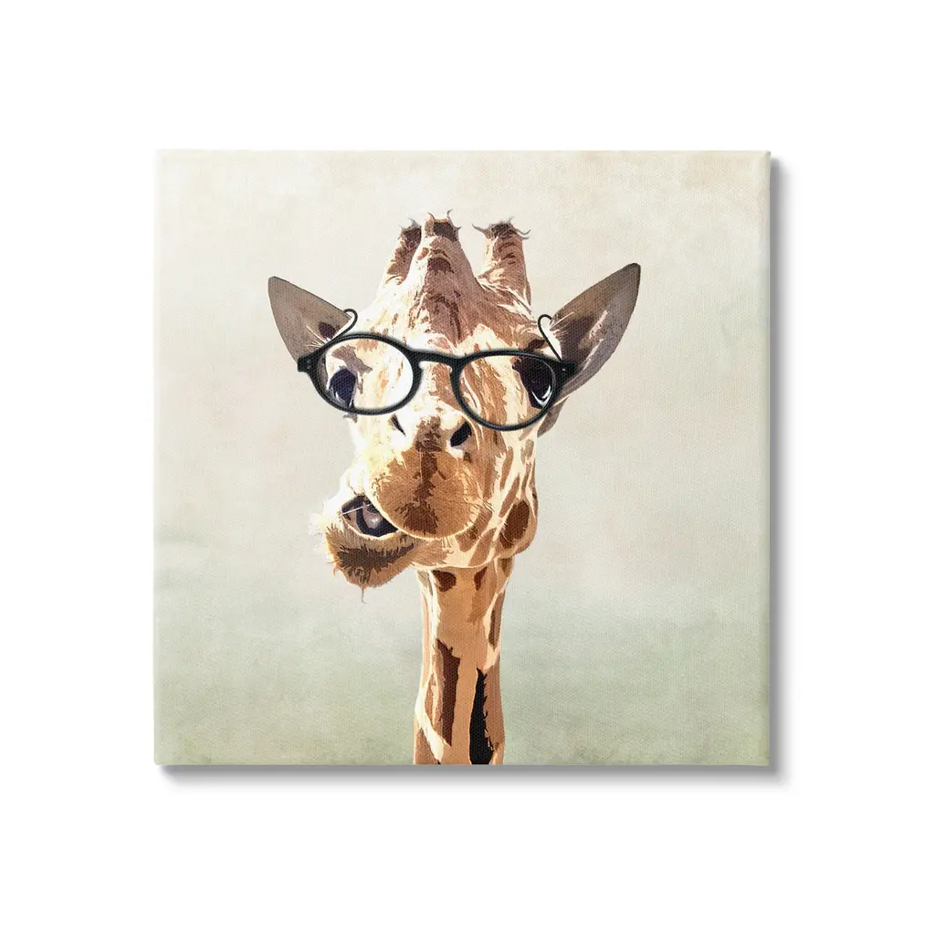 Add dimension to any room with our textured Framed Giclee Artwork. Our framed artwork is securely mounted into a 1.5-inch thick wood grain frame and ready to hang. Frames are available in three alluring styles: black, gray farmhouse and white. In addition, you should check out our oversized options if you want a statement piece. Stupell Wall Art is made in the USA.Features: Dimensions: 12 x 1.5 x 12 FramedFramed Giclee Sizes Include Standard: 12 x 1.5 x 12 Large: 17 x 1.5 x 17 Oversized: 24 x 1.5 x 24Wall Art is Ready to Hang - No Installation or Hardware Needed. For Easy Set Up Lean or Layer Artwork on Shelf or Against Wall.Our giclée prints are carefully mounted on a durable MDF backing, and then perfectly finished in a 1.5 inch thick woodgrain frame. Mounted frame colors include black, gray farmhouse and white. Made In USA.Artwork Relates To: Glasses, Animal, Giraffe, Mammal, WildlifeDesign by Karen Smith