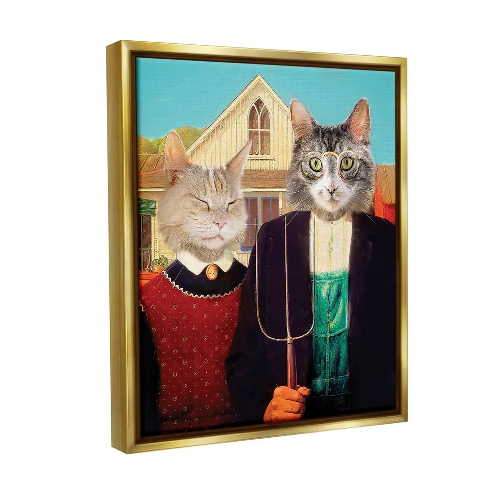Stupell Funny Classic Cat Painting Framed Floater Canvas Wall Art Design By Karen Burke - 25 X 31 - Gold