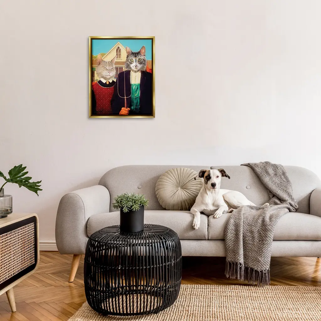 Elevate your home or office to the next level with Stupell Framed Floating Canvas Wall Art. Our premium hand-stretched canvas is mounted securely into a sturdy lightweight frame. The museum-style gap between the wrapped canvas and the box frame gives the illusion of floating artwork. Stupell Wall Art is made in the USA.Features: Dimensions: 17 x 1.7 x 21 Frame, 16 x 1.5 x 20 Canvas ArtFloating Frame Canvas Products are available in sizes 17"x21" and 25"x31". All Floating Frame Canvas Products have a 1.7" Depth.Wall Art is Ready to Hang with Hardware Free Hanging. No Installation required. For Easy Set Up Lean or Layer Artwork on Shelf or Against Wall. Artwork is Permently Fixed into the Frame.Our elevated 1.7" Thick Floating Frame is the perfect complement to our canvas style Wall Art. We use only the highest quality inks in house with industry leading printing solutions. Canvas is hand stretched over a durable wood foundation and then mounted securly into a Modern Box Frame. Made in the USA.Artwork Relates To: Arch, Architecture, Animal, Cat, Mammal, Pet, Classic, Humor, Funny, FarmDesign by Karen Burke