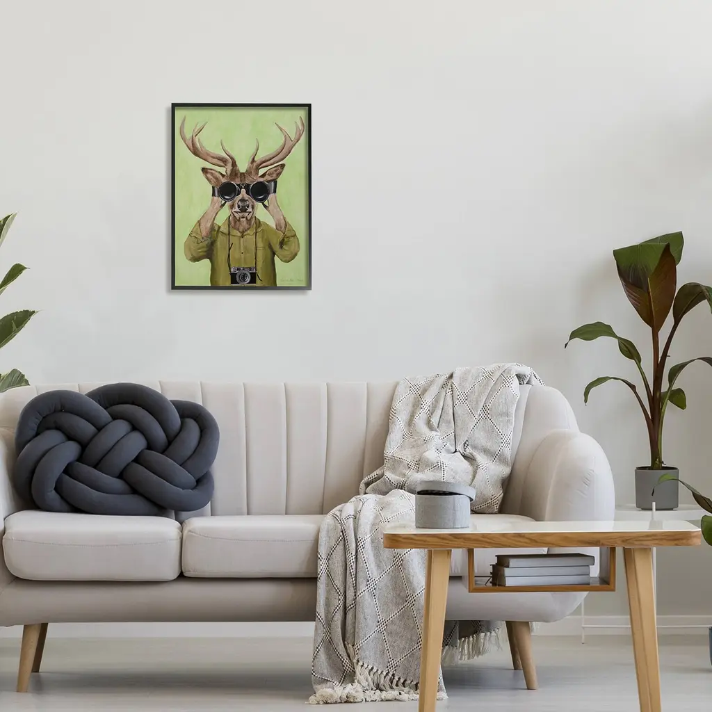 Stupell Funny Cute Deer Binoculars Camera Painting Green Background Framed Wall Art - Brown - 16 X 20 - Black