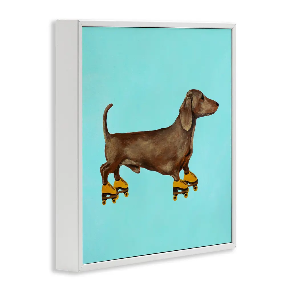 Add dimension to any room with our textured Framed Giclee Artwork. Our framed artwork is securely mounted into a 1.5-inch thick wood grain frame and ready to hang. Frames are available in three alluring styles: black, gray farmhouse and white. In addition, you should check out our oversized options if you want a statement piece. Stupell Wall Art is made in the USA.Features: Dimensions: 12 x 1.5 x 12 FramedFramed Giclee Sizes Include Standard: 12 x 1.5 x 12 Large: 17 x 1.5 x 17 Oversized: 24 x 1.5 x 24Wall Art is Ready to Hang - No Installation or Hardware Needed. For Easy Set Up Lean or Layer Artwork on Shelf or Against Wall.Our giclée prints are carefully mounted on a durable MDF backing, and then perfectly finished in a 1.5 inch thick woodgrain frame. Mounted frame colors include black, gray farmhouse and white. Made In USA.Artwork Relates To: Animal, Canine, Dog, Hound, Mammal, Pet, Dachshund, Skating, RollerskatingDesign by Coco de Paris