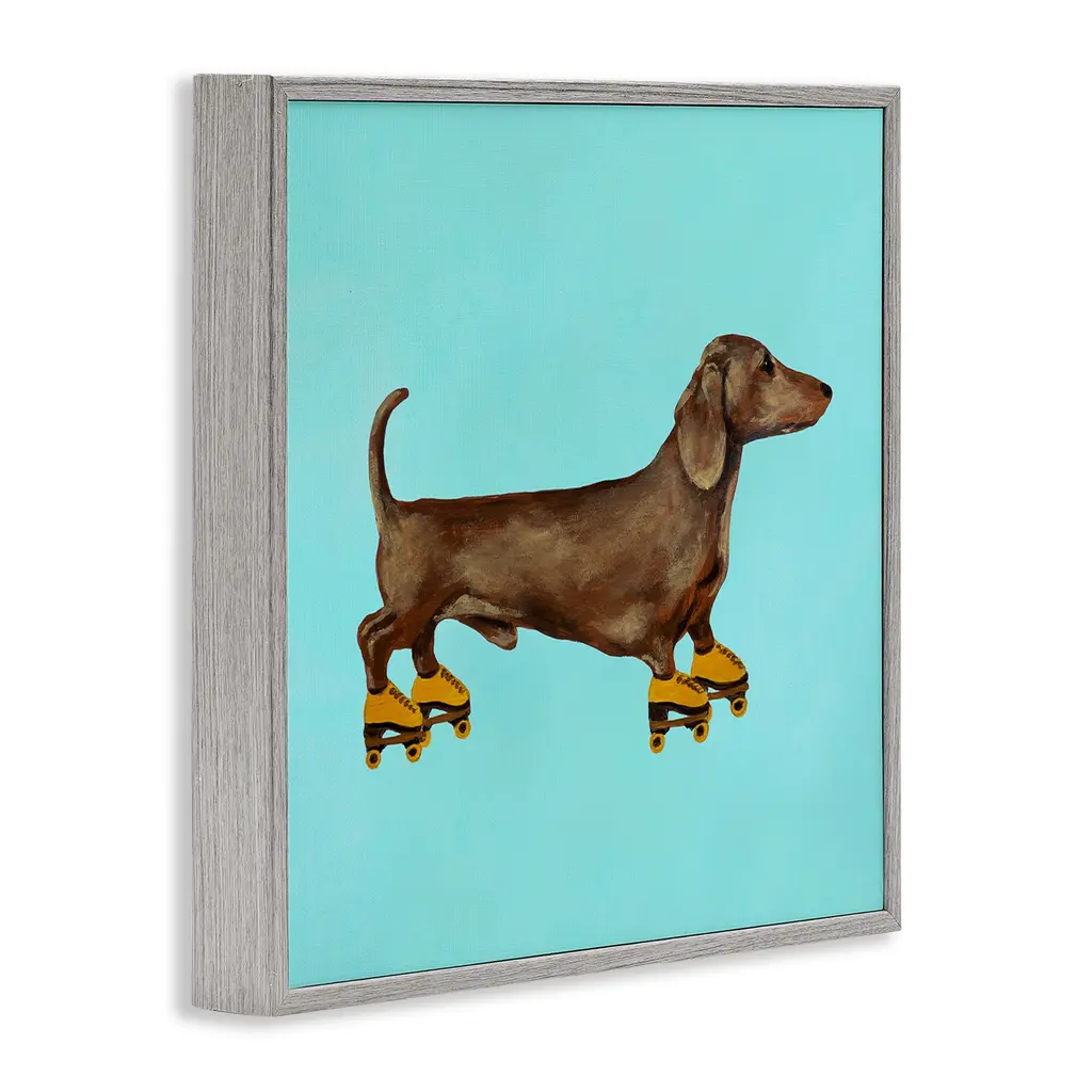 Add dimension to any room with our textured Framed Giclee Artwork. Our framed artwork is securely mounted into a 1.5-inch thick wood grain frame and ready to hang. Frames are available in three alluring styles: black, gray farmhouse and white. In addition, you should check out our oversized options if you want a statement piece. Stupell Wall Art is made in the USA.Features: Dimensions: 12 x 1.5 x 12 FramedFramed Giclee Sizes Include Standard: 12 x 1.5 x 12 Large: 17 x 1.5 x 17 Oversized: 24 x 1.5 x 24Wall Art is Ready to Hang - No Installation or Hardware Needed. For Easy Set Up Lean or Layer Artwork on Shelf or Against Wall.Our giclée prints are carefully mounted on a durable MDF backing, and then perfectly finished in a 1.5 inch thick woodgrain frame. Mounted frame colors include black, gray farmhouse and white. Made In USA.Artwork Relates To: Animal, Canine, Dog, Hound, Mammal, Pet, Dachshund, Skating, RollerskatingDesign by Coco de Paris