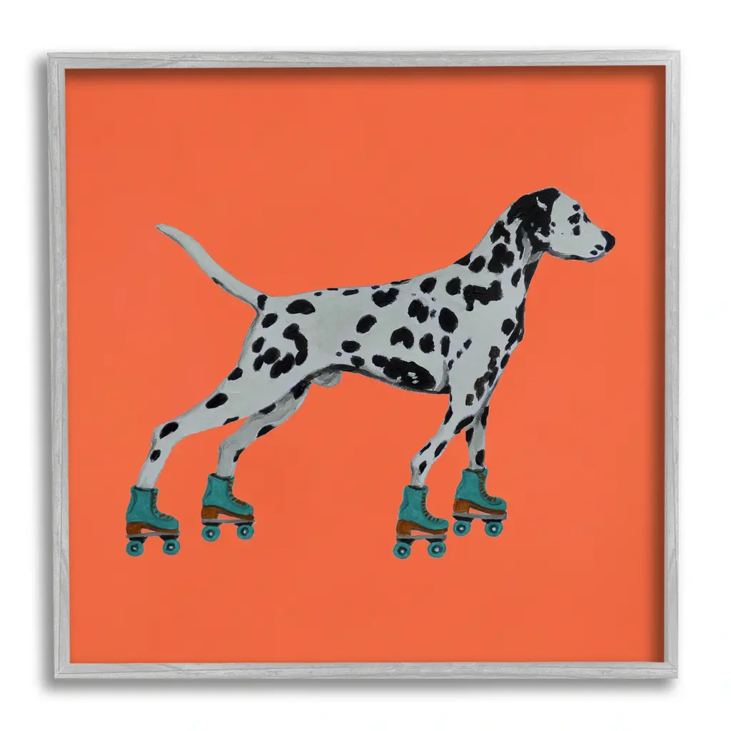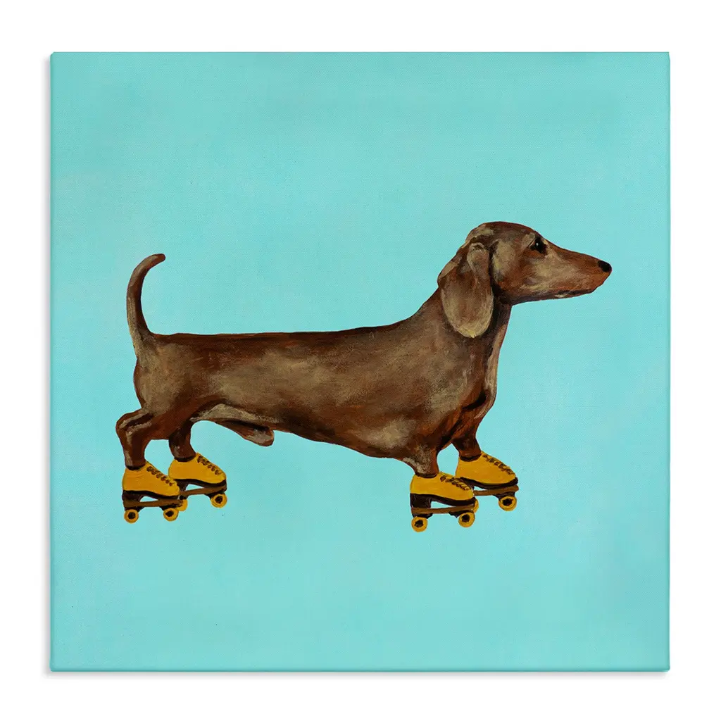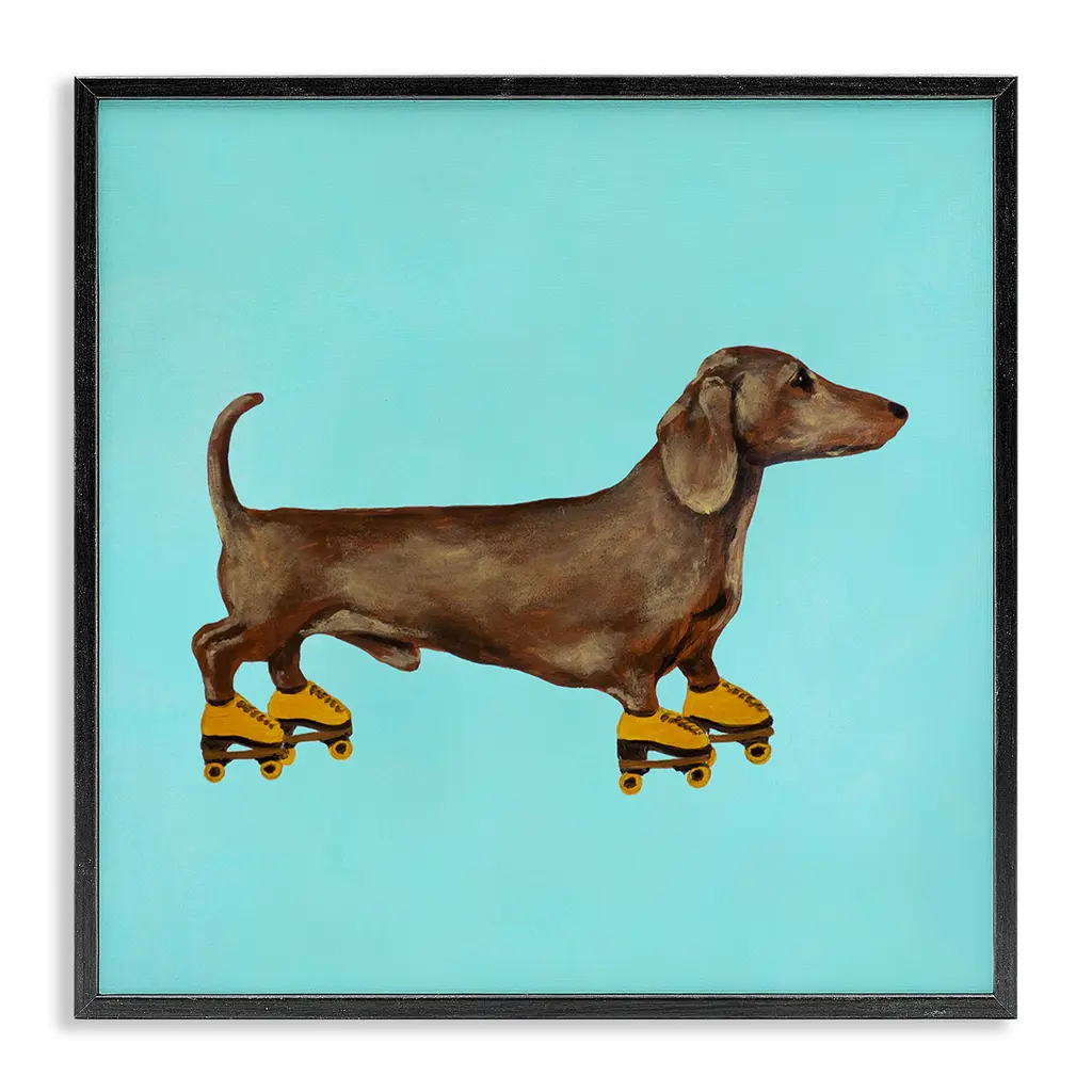 Add dimension to any room with our textured Framed Giclee Artwork. Our framed artwork is securely mounted into a 1.5-inch thick wood grain frame and ready to hang. Frames are available in three alluring styles: black, gray farmhouse and white. In addition, you should check out our oversized options if you want a statement piece. Stupell Wall Art is made in the USA.Features: Dimensions: 12 x 1.5 x 12 FramedFramed Giclee Sizes Include Standard: 12 x 1.5 x 12 Large: 17 x 1.5 x 17 Oversized: 24 x 1.5 x 24Wall Art is Ready to Hang - No Installation or Hardware Needed. For Easy Set Up Lean or Layer Artwork on Shelf or Against Wall.Our giclée prints are carefully mounted on a durable MDF backing, and then perfectly finished in a 1.5 inch thick woodgrain frame. Mounted frame colors include black, gray farmhouse and white. Made In USA.Artwork Relates To: Animal, Canine, Dog, Hound, Mammal, Pet, Dachshund, Skating, RollerskatingDesign by Coco de Paris