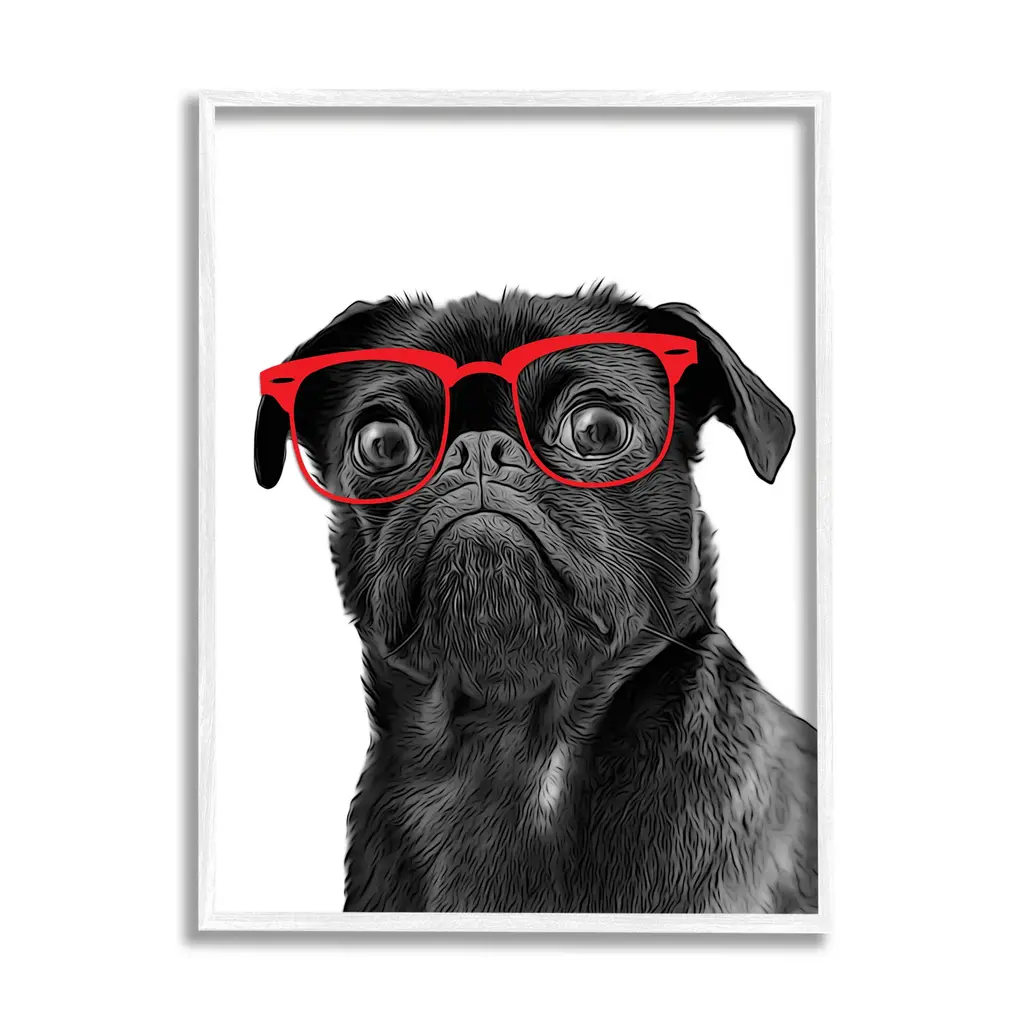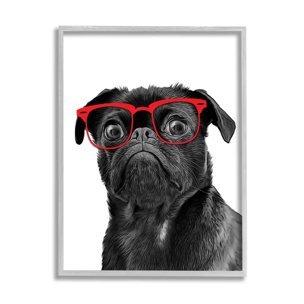 Add dimension to any room with our textured Framed Giclee Artwork. Our framed artwork is securely mounted into a 1.5-inch thick wood grain frame and ready to hang. Frames are available in three alluring styles: black, gray farmhouse and white. In addition, you should check out our oversized options if you want a statement piece. Stupell Wall Art is made in the USA.Features: Dimensions: 11 x 1.5 x 14 FramedFramed Giclee Sizes Include Standard: 11 x 1.5 x 14 Large: 16 x 1.5 x 20 Oversized: 24 x 1.5 x 30Wall Art is Ready to Hang - No Installation or Hardware Needed. For Easy Set Up Lean or Layer Artwork on Shelf or Against Wall.Our giclée prints are carefully mounted on a durable MDF backing, and then perfectly finished in a 1.5 inch thick woodgrain frame. Mounted frame colors include black, gray farmhouse and white. Made In USA.Artwork Relates To: Glasses, Animal, Canine, Mammal, Dog, Pet, Pug, PuppyDesign by Annalisa Latella
