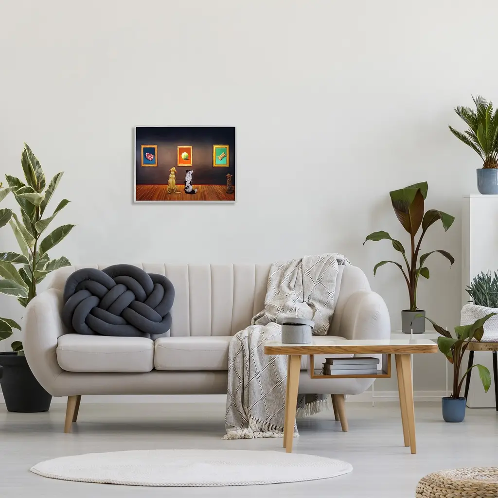 Our Framed Giclee Wall Art adds a touch of class to any space in your home or office. Frames are available in three alluring styles: black, gray farmhouse and white. Our textured artwork will add more depth and dimension to any space. Each piece is mounted with a 1.5 inch thick wood grain frame that is ready to hang! Looking for a statement piece? We have oversized artwork available. Room Type: Living Room, Den, Hallway, Office, Entryway, Study, Dining Room or Bedroom, Guest Room, Studio, Dorm or BoudoirFeatures: Dimensions: 14 x 1.5 x 11 FramedFramed Giclee Sizes Include Standard: 14 x 1.5 x 11 Large: 20 x 1.5 x 16 Oversized: 30 x 1.5 x 24Wall Art is Ready to Hang - No Installation or Hardware Needed. For Easy Set Up Lean or Layer Artwork on Shelf or Against Wall.Our giclée prints are carefully mounted on a durable MDF backing, and then perfectly finished in a 1.5 inch thick woodgrain frame. Mounted frame colors include black, gray farmhouse and white. Made In USA.Artwork Relates To: Painting, Ball, Animal, Canine, Dog, Mammal, Pet, Gallery, Funny, MuseumDesign by Lucia Heffernan