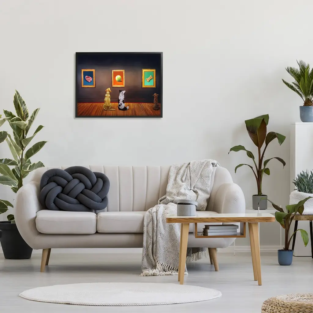 Our Framed Giclee Wall Art adds a touch of class to any space in your home or office. Frames are available in three alluring styles: black, gray farmhouse and white. Our textured artwork will add more depth and dimension to any space. Each piece is mounted with a 1.5 inch thick wood grain frame that is ready to hang! Looking for a statement piece? We have oversized artwork available. Room Type: Living Room, Den, Hallway, Office, Entryway, Study, Dining Room or Bedroom, Guest Room, Studio, Dorm or BoudoirFeatures: Dimensions: 14 x 1.5 x 11 FramedFramed Giclee Sizes Include Standard: 14 x 1.5 x 11 Large: 20 x 1.5 x 16 Oversized: 30 x 1.5 x 24Wall Art is Ready to Hang - No Installation or Hardware Needed. For Easy Set Up Lean or Layer Artwork on Shelf or Against Wall.Our giclée prints are carefully mounted on a durable MDF backing, and then perfectly finished in a 1.5 inch thick woodgrain frame. Mounted frame colors include black, gray farmhouse and white. Made In USA.Artwork Relates To: Painting, Ball, Animal, Canine, Dog, Mammal, Pet, Gallery, Funny, MuseumDesign by Lucia Heffernan