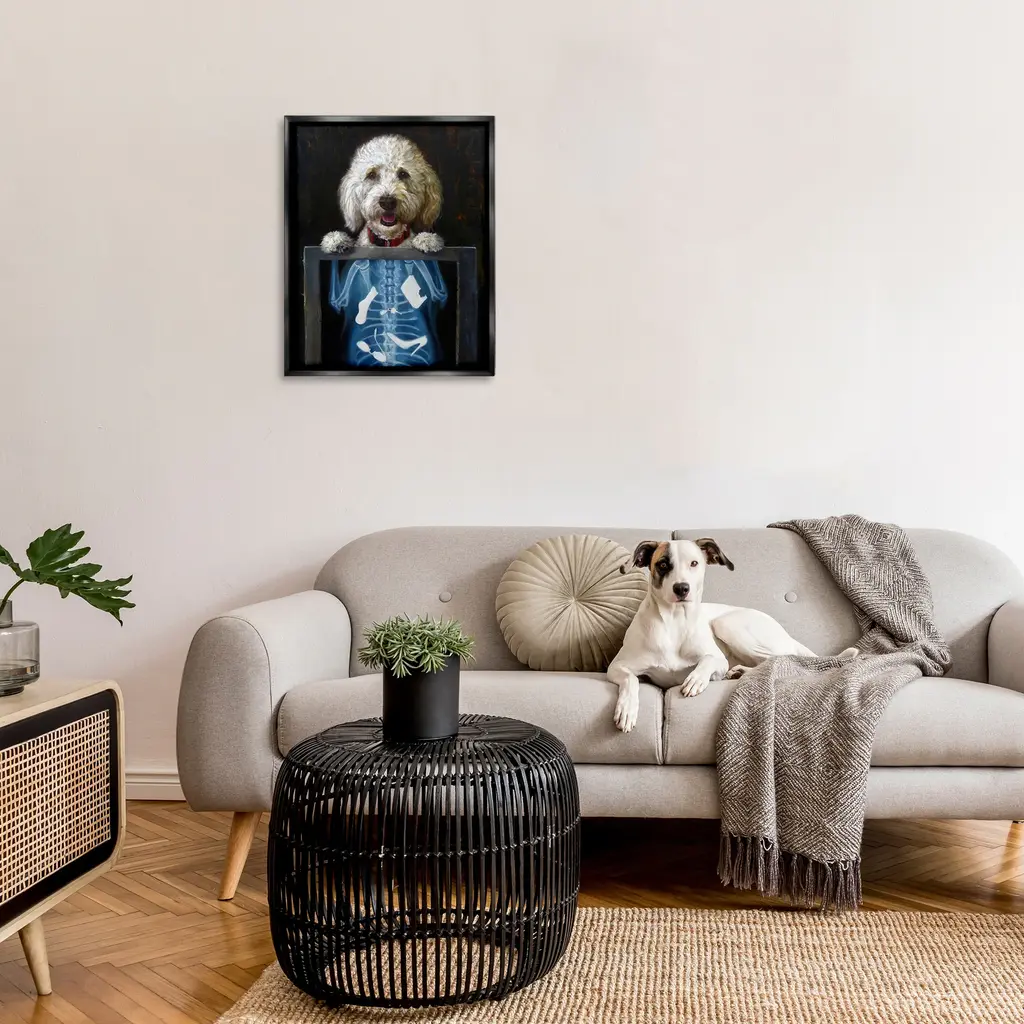 Elevate your home or office to the next level with Stupell Framed Floating Canvas Wall Art. Our premium hand-stretched canvas is mounted securely into a sturdy lightweight frame. The museum-style gap between the wrapped canvas and the box frame gives the illusion of floating artwork. Stupell Wall Art is made in the USA.Features: Dimensions: 17 x 1.7 x 21 Frame, 16 x 1.5 x 20 Canvas ArtFloating Frame Sizes Include Standard: 17 x 1.7 x 21 Oversized: 25 x 1.7 x 31Wall Art is Ready to Hang - No Installation or Hardware Needed. For Easy Set Up Lean or Layer Artwork on Shelf or Against Wall.Our elevated 1.7" Thick Floating Frame is the perfect complement to our canvas style Wall Art. We use only the highest quality inks in house with industry leading printing solutions. Canvas is hand stretched over a durable wood foundation and then mounted securly into a Modern Box Frame. Made in the USA.Artwork Relates To: Animal, Canine, Dog, Mammal, Pet, Painting, FunnyDesign by Lucia Heffernan