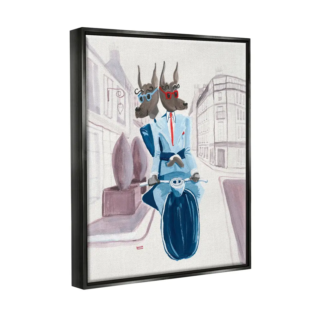 Elevate your home or office to the next level with Stupell Framed Floating Canvas Wall Art. Our premium hand-stretched canvas is mounted securely into a sturdy lightweight frame. The museum-style gap between the wrapped canvas and the box frame gives the illusion of floating artwork. Stupell Wall Art is made in the USA.Features: Dimensions: 17 x 1.7 x 21 Frame, 16 x 1.5 x 20 Canvas ArtFloating Frame Sizes Include Standard: 17 x 1.7 x 21 Oversized: 25 x 1.7 x 31Wall Art is Ready to Hang - No Installation or Hardware Needed. For Easy Set Up Lean or Layer Artwork on Shelf or Against Wall.Our elevated 1.7" Thick Floating Frame is the perfect complement to our canvas style Wall Art. We use only the highest quality inks in house with industry leading printing solutions. Canvas is hand stretched over a durable wood foundation and then mounted securly into a Modern Box Frame. Made in the USA.Artwork Relates To: Drawing, Painting, Dog, Suits, Moped, Scooter, City, Buildings, UrbanDesign by Lucy Marshall