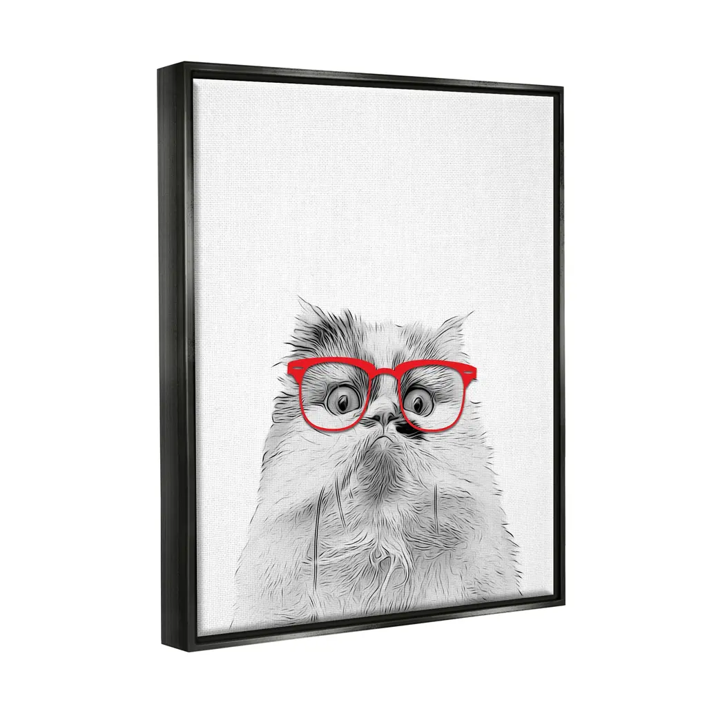 Elevate your home or office to the next level with Stupell Framed Floating Canvas Wall Art. Our premium hand-stretched canvas is mounted securely into a sturdy lightweight frame. The museum-style gap between the wrapped canvas and the box frame gives the illusion of floating artwork. Stupell Wall Art is made in the USA.Features: Dimensions: 17 x 1.7 x 21 Frame, 16 x 1.5 x 20 Canvas ArtFloating Frame Sizes Include Standard: 17 x 1.7 x 21 Oversized: 25 x 1.7 x 31Wall Art is Ready to Hang - No Installation or Hardware Needed. For Easy Set Up Lean or Layer Artwork on Shelf or Against Wall.Our elevated 1.7" Thick Floating Frame is the perfect complement to our canvas style Wall Art. We use only the highest quality inks in house with industry leading printing solutions. Canvas is hand stretched over a durable wood foundation and then mounted securly into a Modern Box Frame. Made in the USA.Artwork Relates To: Glasses, Animal, Mammal, Wildlife, Cat, Pet Design by Annalisa Latella